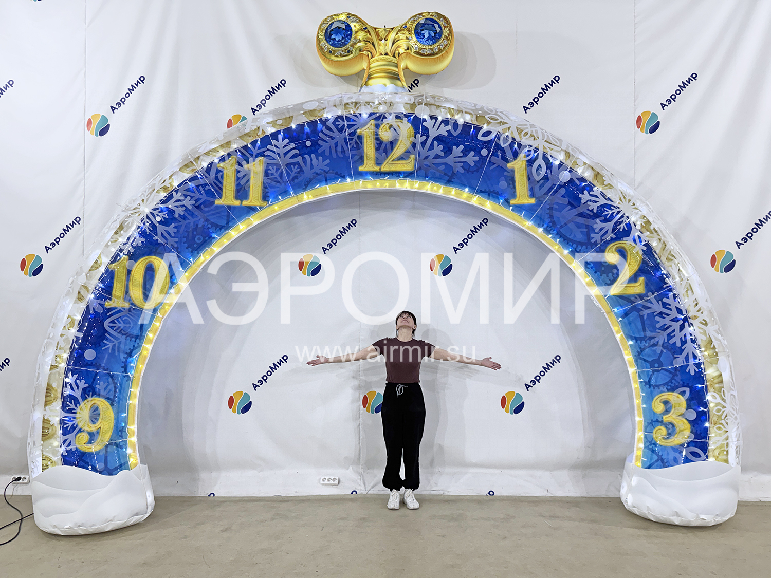 Создайте незабываемую атмосферу с нашей яркой надувной аркой «Часы». Идеально подходит для городских мероприятий, театральных постановок и оформления торговых центров.