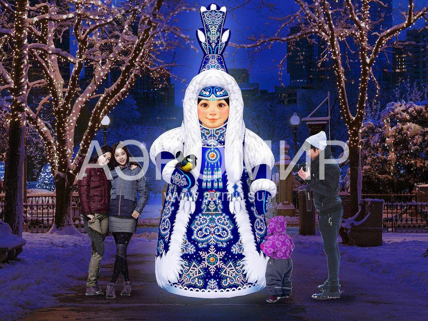 Надувная якутская Снегурочка Хаарчаана — яркое зимнее украшение с этническим колоритом. Изготовлена из прочного материала Oxford с качественной печатью и встроенной подсветкой, устойчива к морозу и влаге. Идеально подходит для оформления новогодних площадок и фотозон.