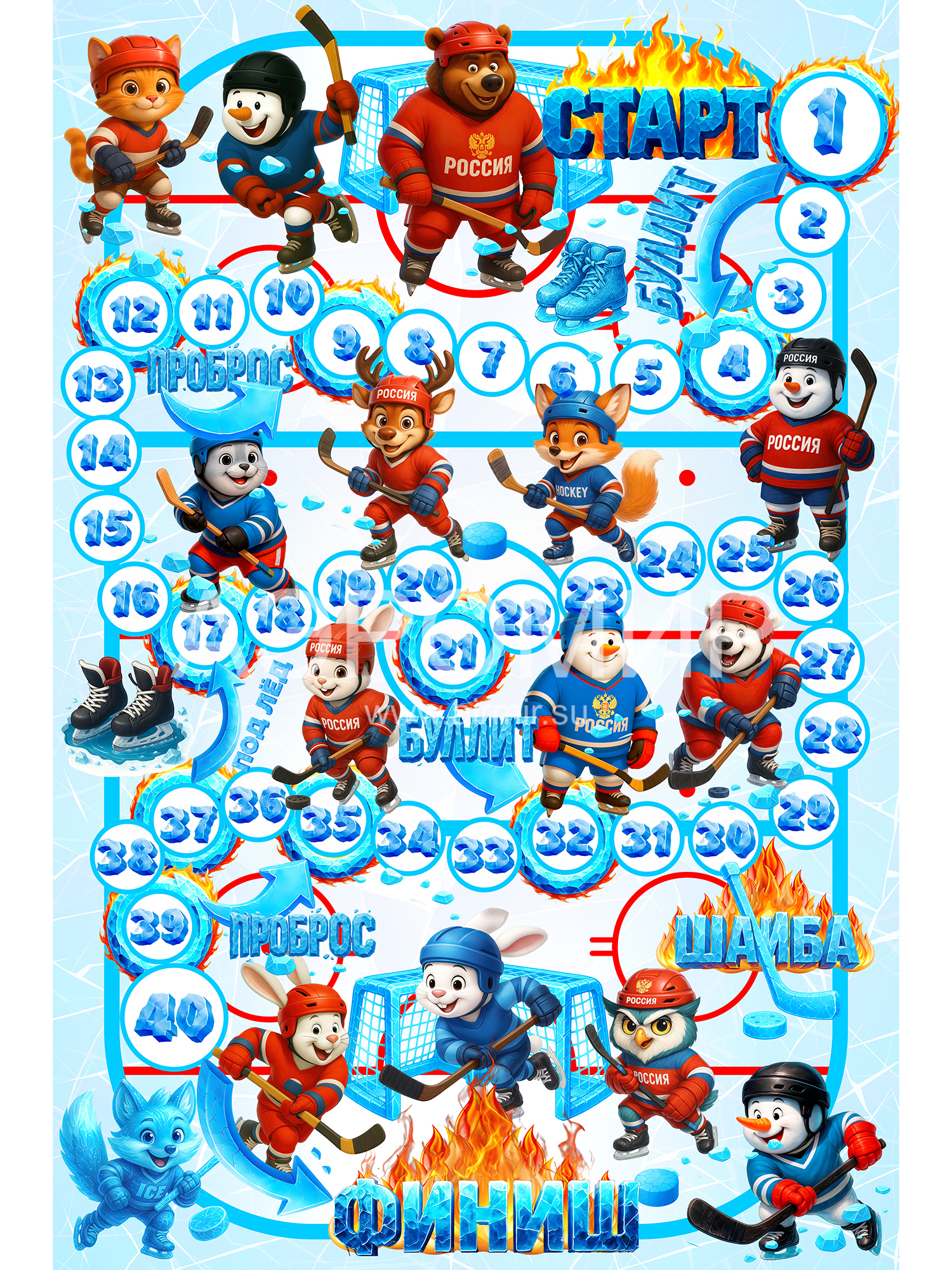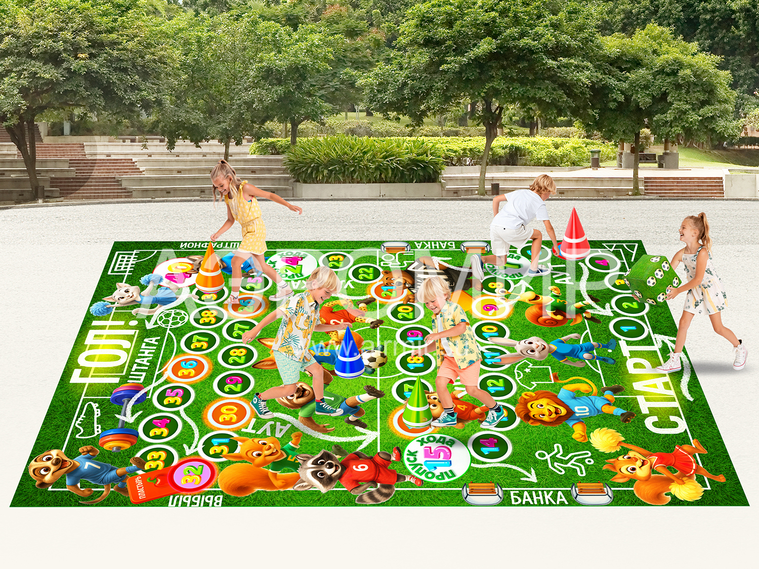 Игра бродилка 3,5 х 4,5 м с легкими правилами и понятным сюжетом. Праздничная фотопечать, яркая и качественная. Предлагаем несколько вариантов дизайна. Игра мобильная и интересная. Можно играть на улице и в помещении. Изготовим в короткие сроки по самым честным ценам производителя. Гарантия 1 год.