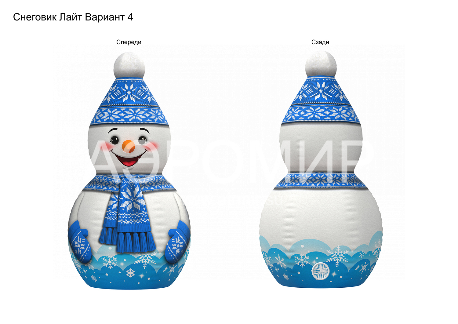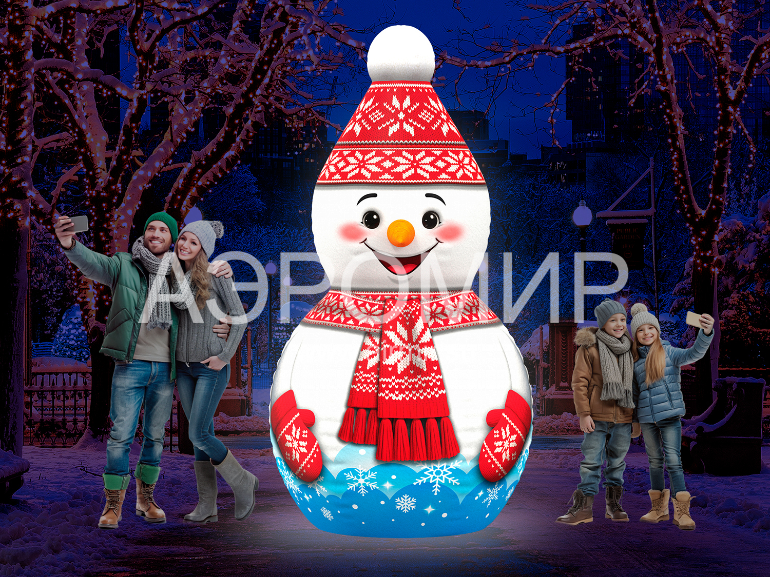 Снеговик Лайт 2.0 – яркая новогодняя фигура, доступна в четырех расцветках и двух размерах (2 и 2,9 метра).