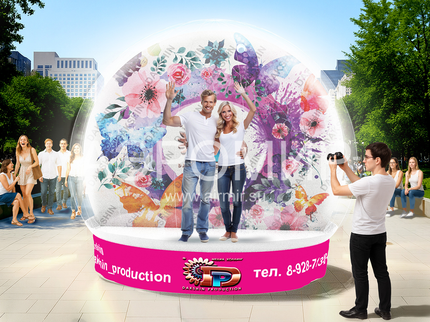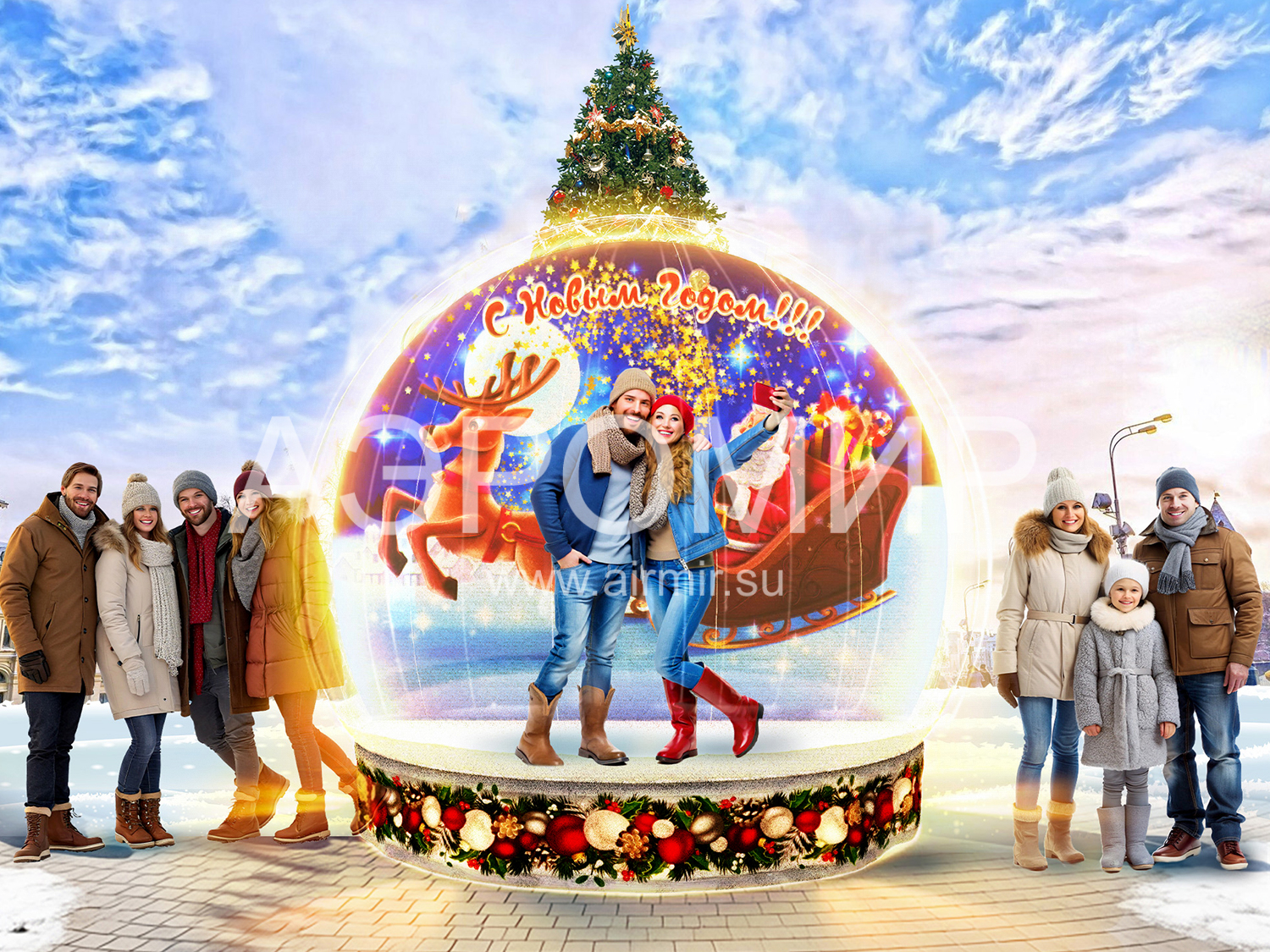 New Year's "Miracle Ball" is a sphere, having entered into which you find yourself in the world of New Year colors. Flying velvet snowflakes, a stunning New Year landscape and a fountain of light shades create an amazing variety for New Year photos.
