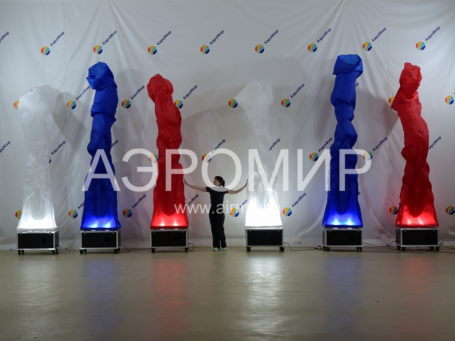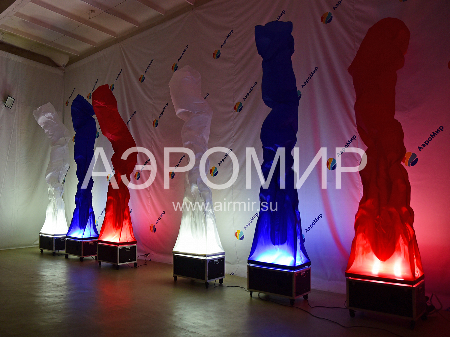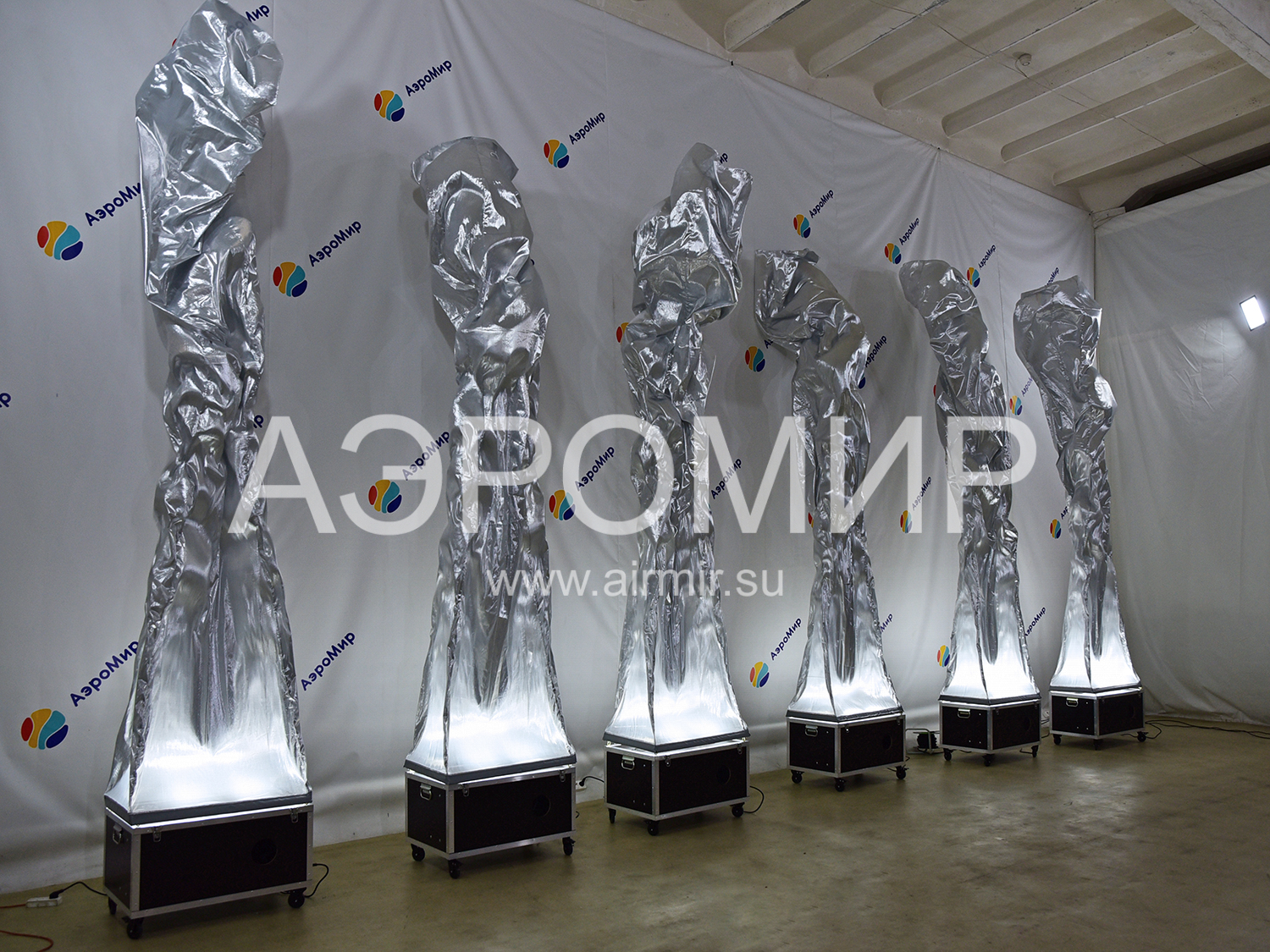 Aerofontan is an example of a dynamic, and therefore not dull, decoration of a festive venue. If you have no idea what it is, remember any fountain you’ve ever seen. As is known, it is formed when water meets an obstacle and because of the pressure created artificially or naturally, rushes up. If you replace water with air and limit its flow to a "pipe" made of synthetic fabric, you get an air fountain. Due to the fact that the material used, as a rule, has a very smooth, shiny surface, overflow and glare appear on the flowing shell, like on water. This effect is greatly enhanced in the evening, when you can turn on the built-in lights.