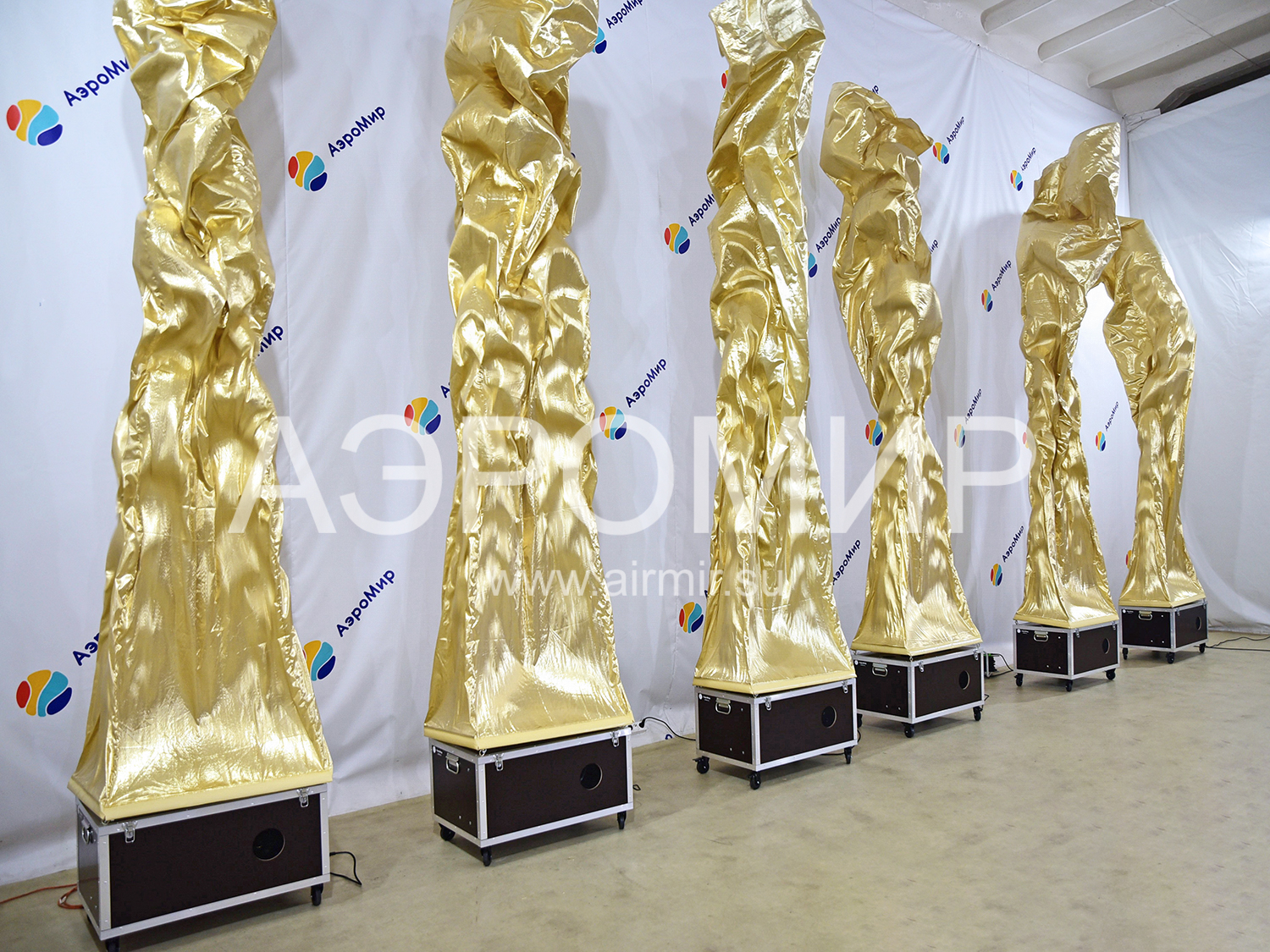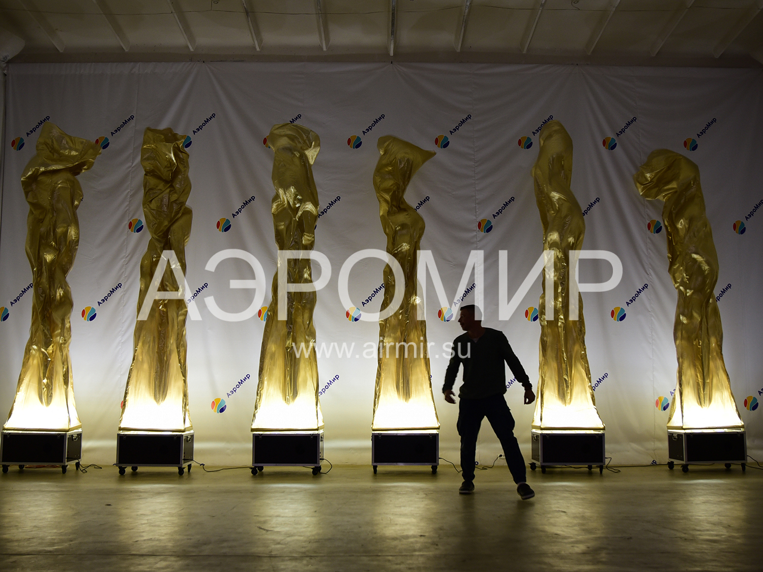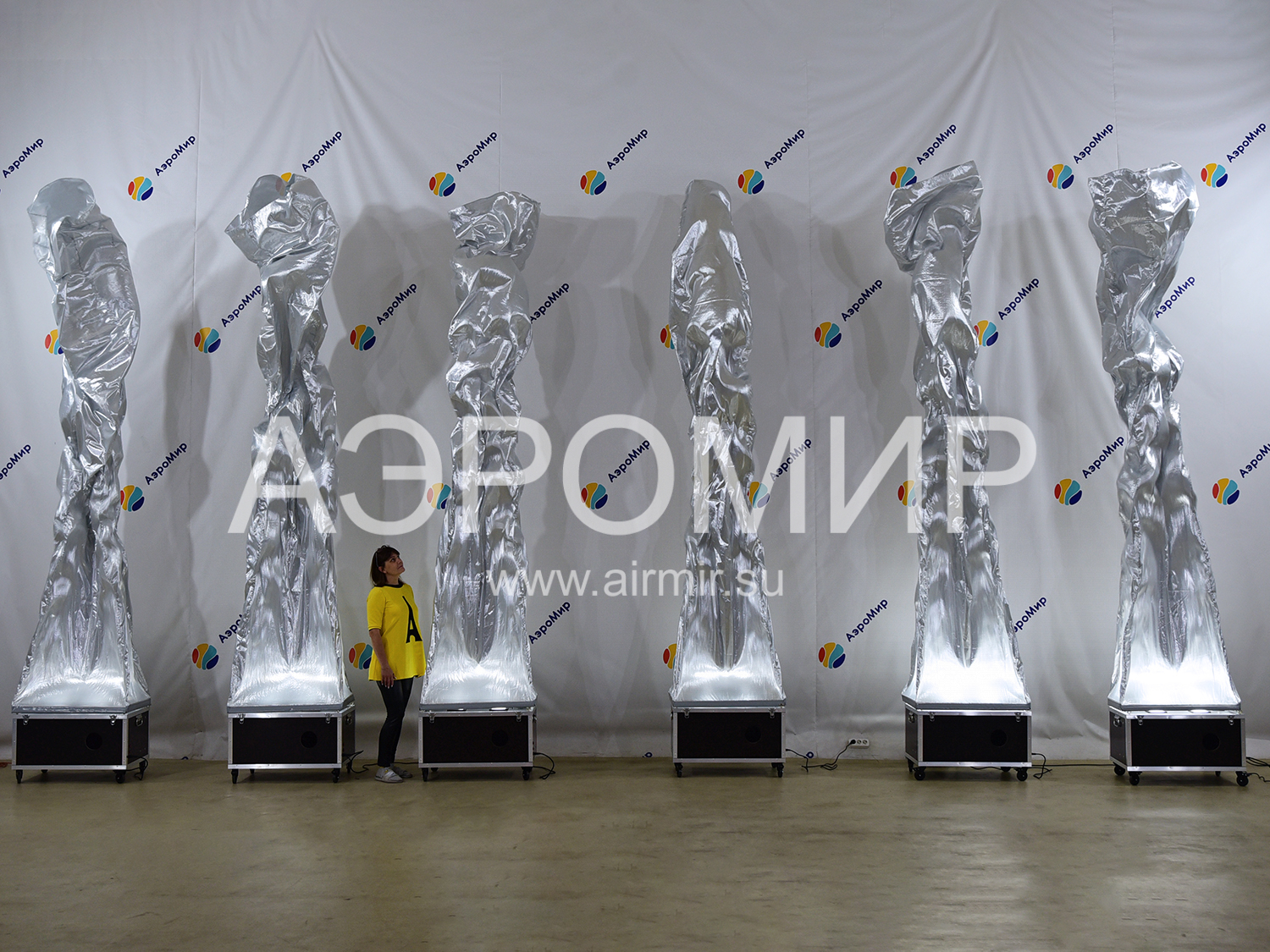 Aerofontan is an example of a dynamic, and therefore not dull, decoration of a festive venue. If you have no idea what it is, remember any fountain you’ve ever seen. As is known, it is formed when water meets an obstacle and because of the pressure created artificially or naturally, rushes up. If you replace water with air and limit its flow to a "pipe" made of synthetic fabric, you get an air fountain. Due to the fact that the material used, as a rule, has a very smooth, shiny surface, overflow and glare appear on the flowing shell, like on water. This effect is greatly enhanced in the evening, when you can turn on the built-in lights.