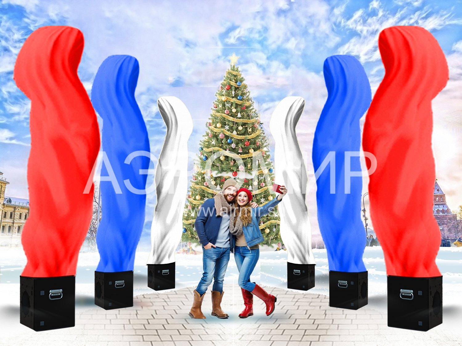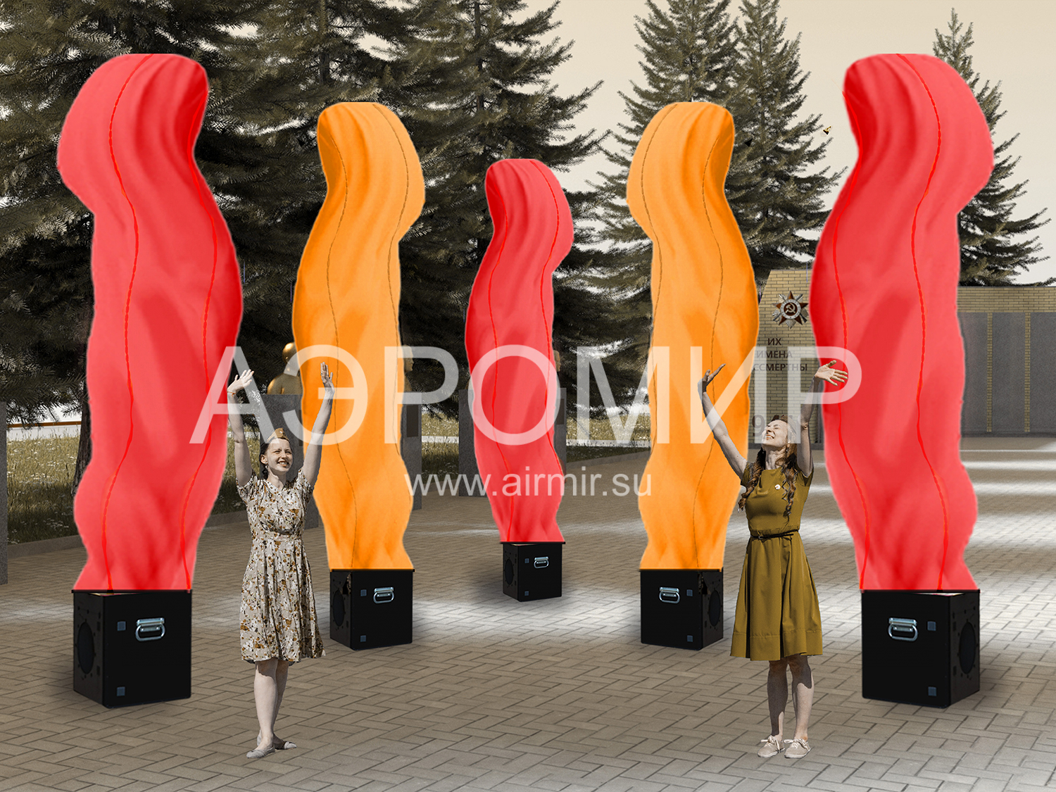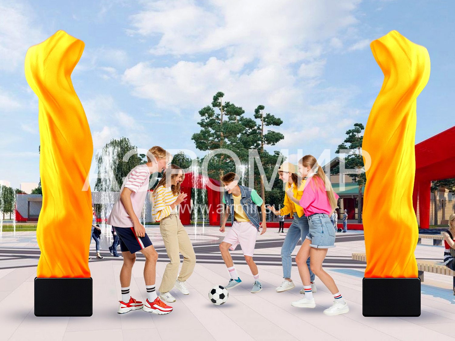 Aerofontana is the most effective way to decorate and make visible any event and place on the market of dynamic constructions. The special effects of Aerofontan perfectly replace traditional decorations and designs of the entrance group.