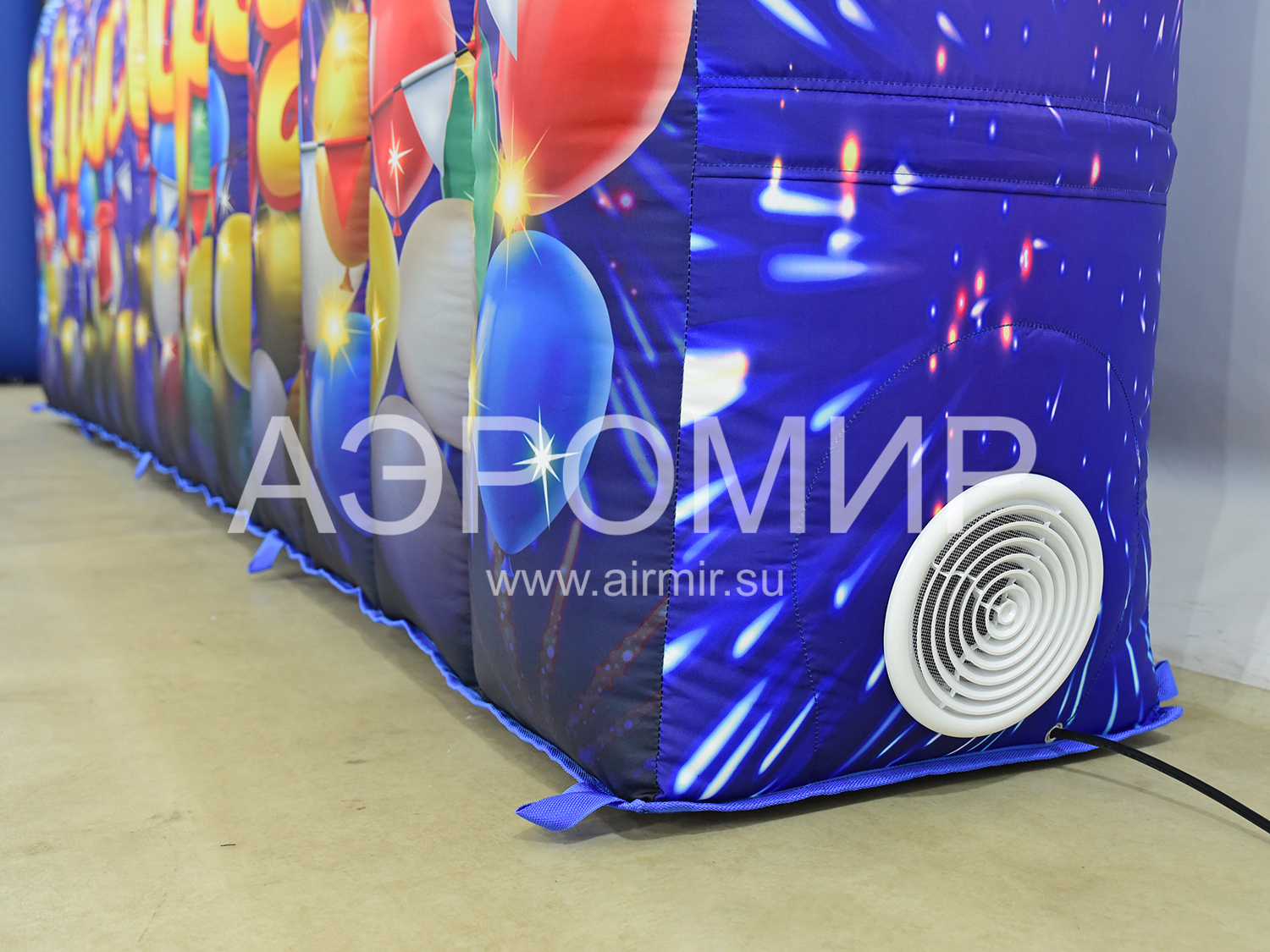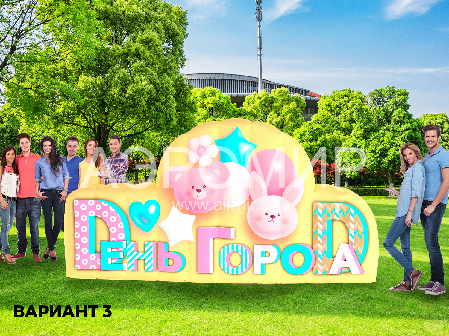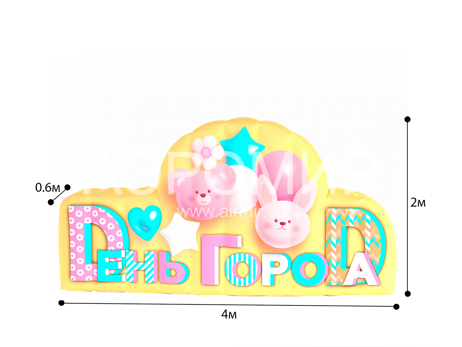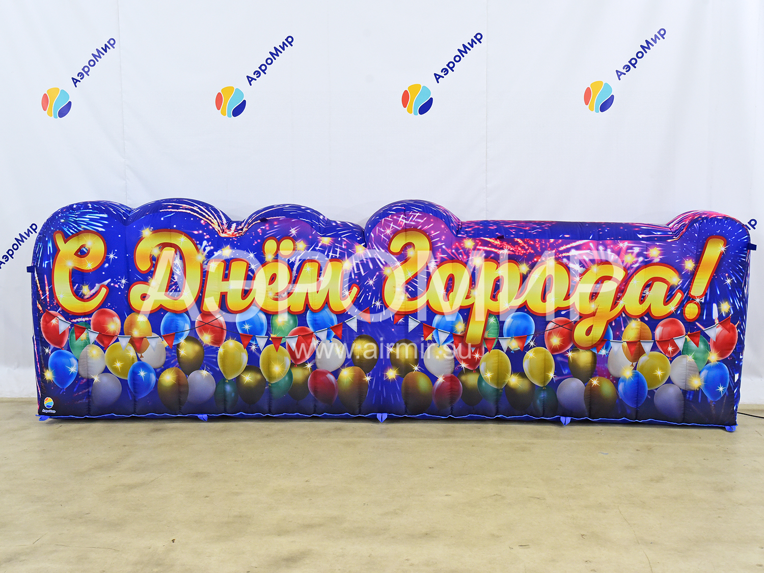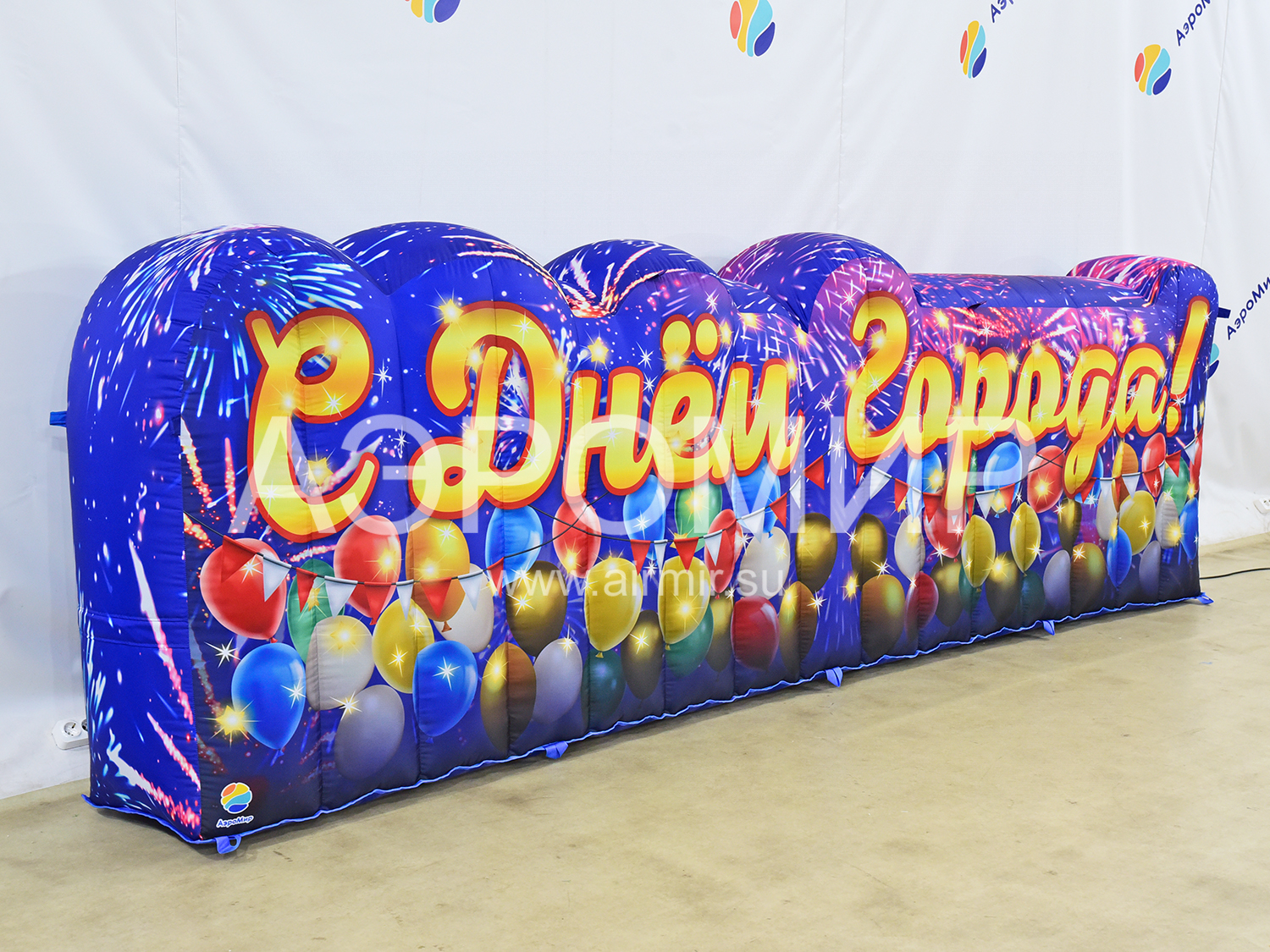 Надувная поздравительная надпись "С Днем города" станет ярким и эффектным украшением для городской площади, сцены и других праздничных площадок. Полноцветная печать с лицевой и боковых сторон, впечатляющие размеры и привлекательный дизайн сделают её прекрасной фотозоной и частью праздничного декора. Доступно 3 варианта исполнения. Гарантия производителя – 1 год.