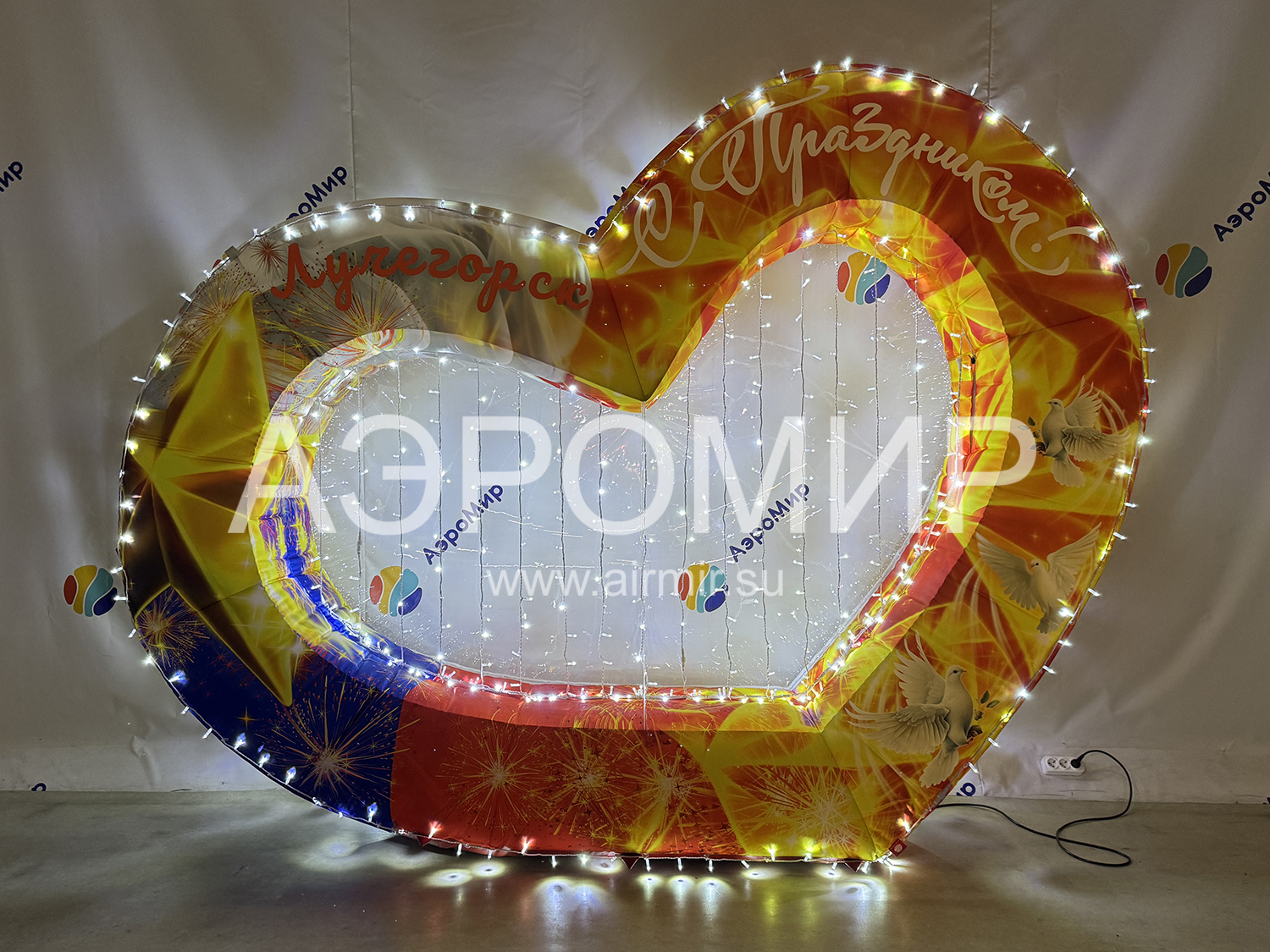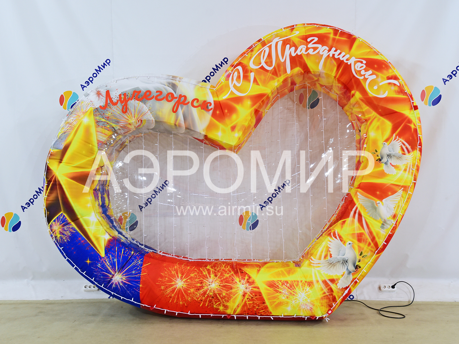 Большое надувное сердце-фотозона с яркой печатью к любому празднику и нарядной гирляндой-подсветкой. Особенно эффектно смотрится в темное время суток. С легкостью брендируем изделие, нанесем слоганы и рекламные надписи. Невероятно праздничная и привлекающая к себе внимание фигура. Гарантия 1 год.