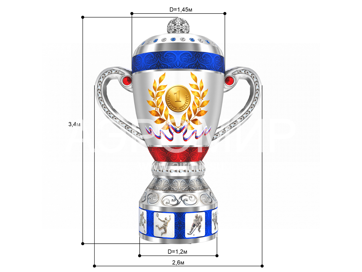 Впечатляющий надувной спортивный кубок с реалистичной фотопечатью – яркий акцент для праздников, спортивных мероприятий и фотозон. Изготовлен из прочных материалов (ПВХ и Оксфорд). Легко устанавливается, брендируется и идеально подходит для рекламы. Гарантия 1 год, быстрая доставка.