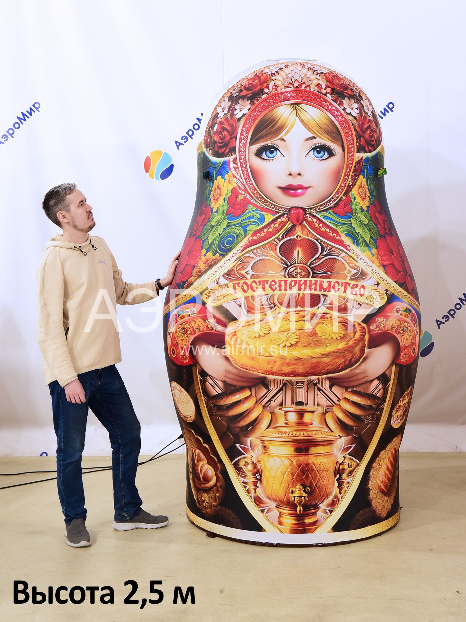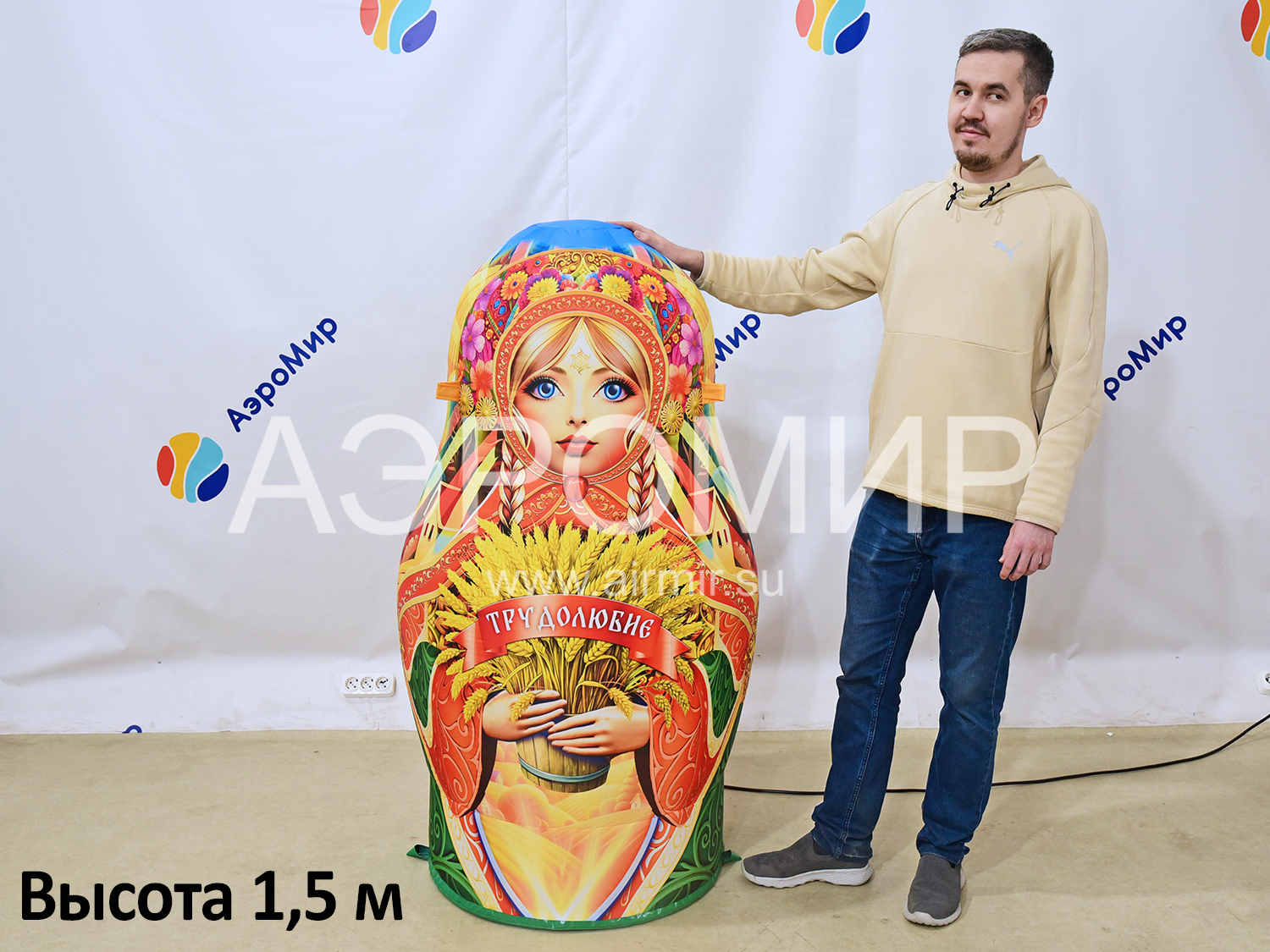 The inflatable matryoshka is a traditional wooden painted toy, a symbol of life and motherhood, one of the business cards of Russia. Such a figure will give a traditional flavor to any holiday.