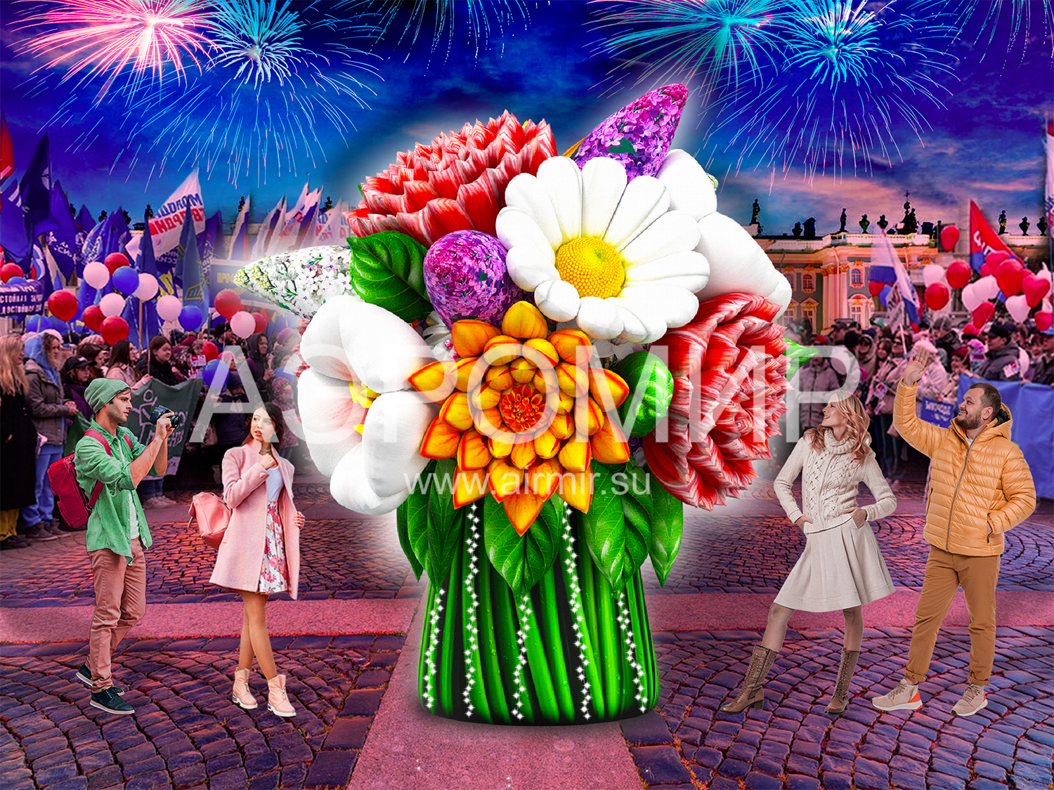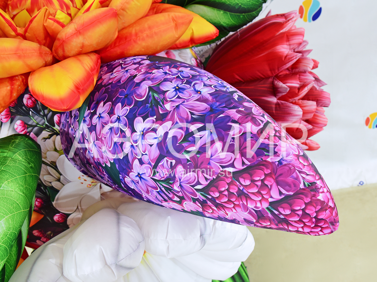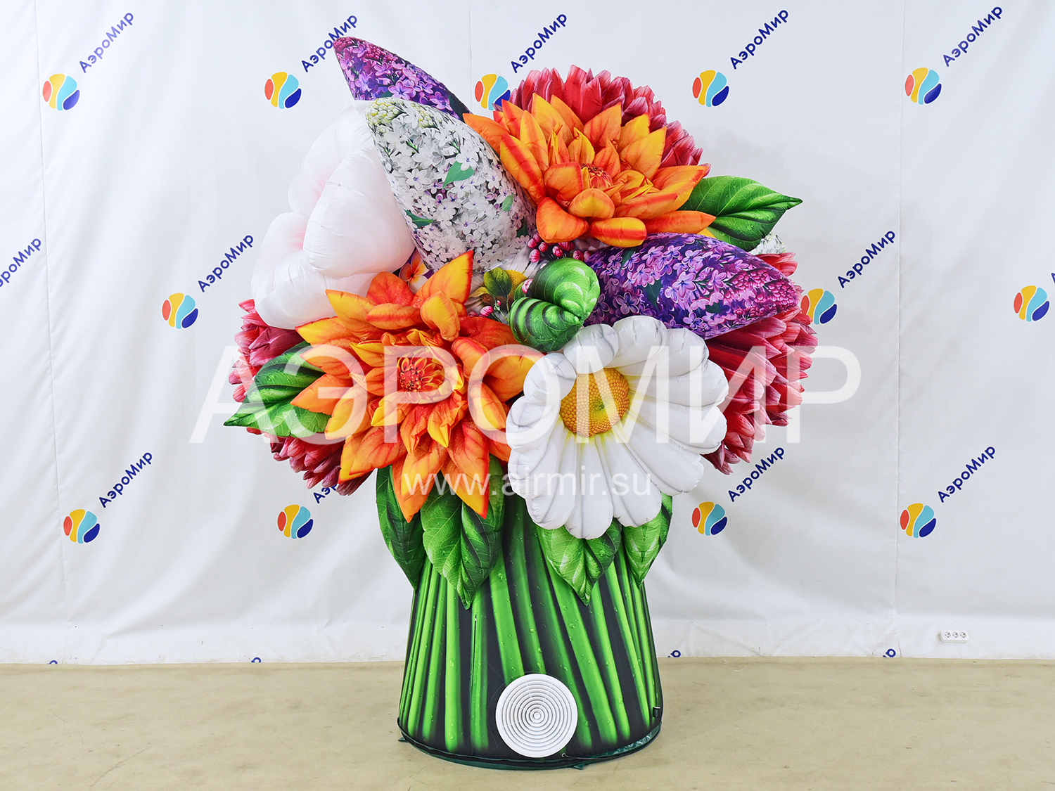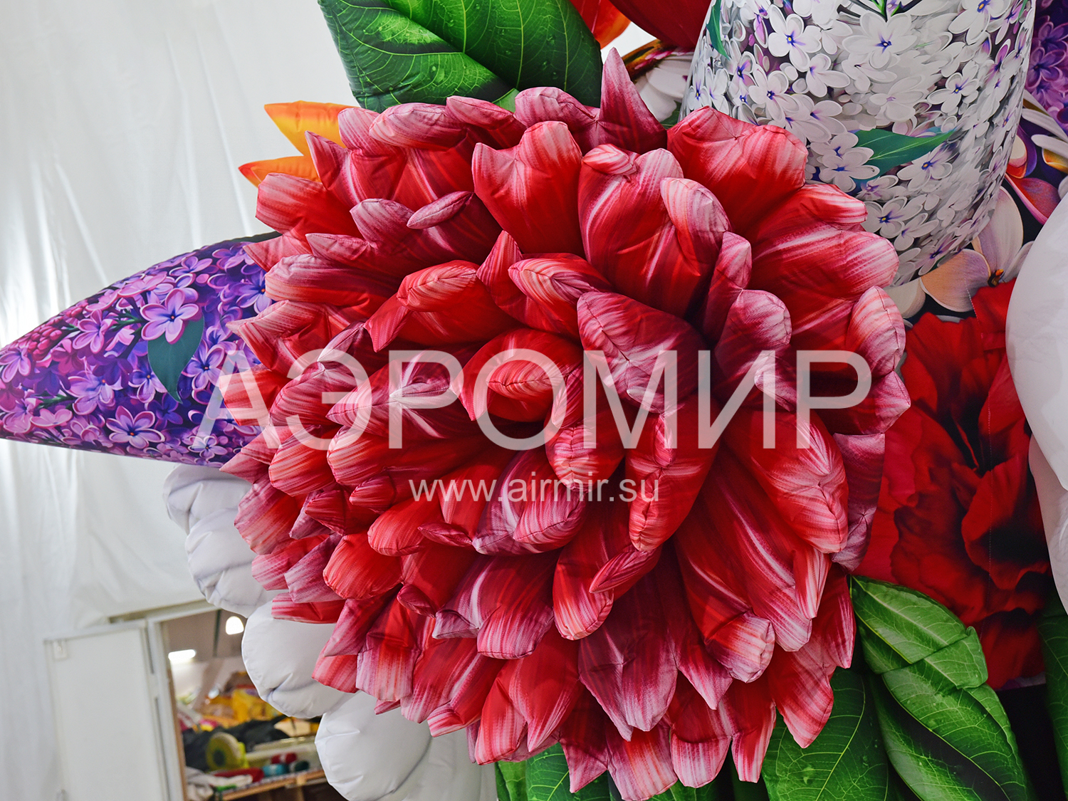 Современные мероприятия все чаще украшают большими надувными букетами цветов, создающими праздничную атмосферу. Предлагаем букет с яблоней, георгинами, гвоздиками и сиренью. Ко Дню Победы добавим георгиевскую ленту. Возможна подсветка.