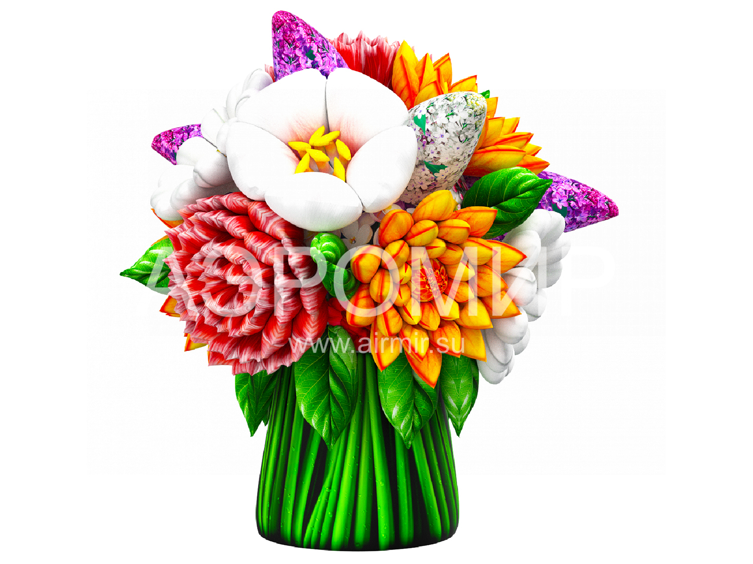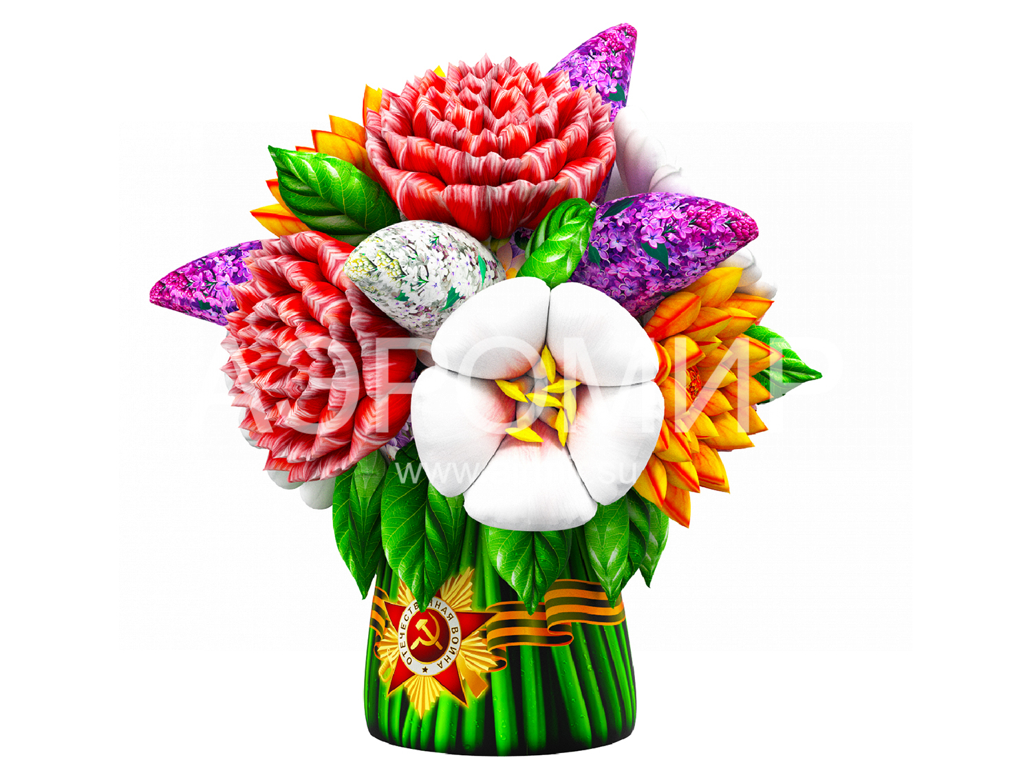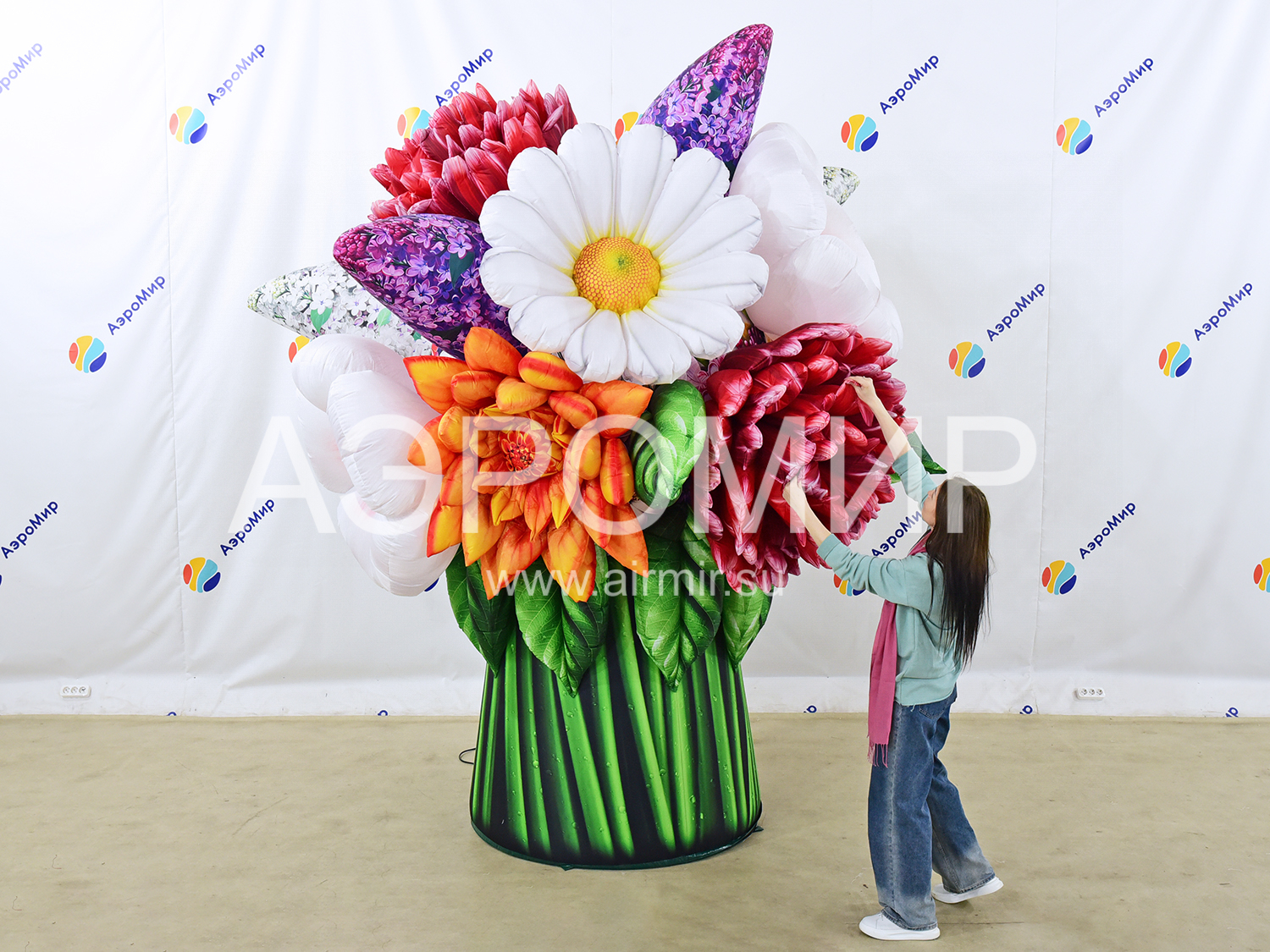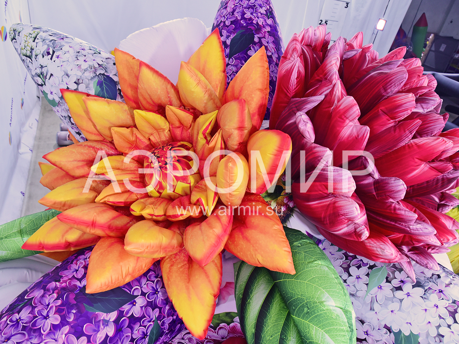 Современные мероприятия все чаще украшают большими надувными букетами цветов, создающими праздничную атмосферу. Предлагаем букет с яблоней, георгинами, гвоздиками и сиренью. Ко Дню Победы добавим георгиевскую ленту. Возможна подсветка.