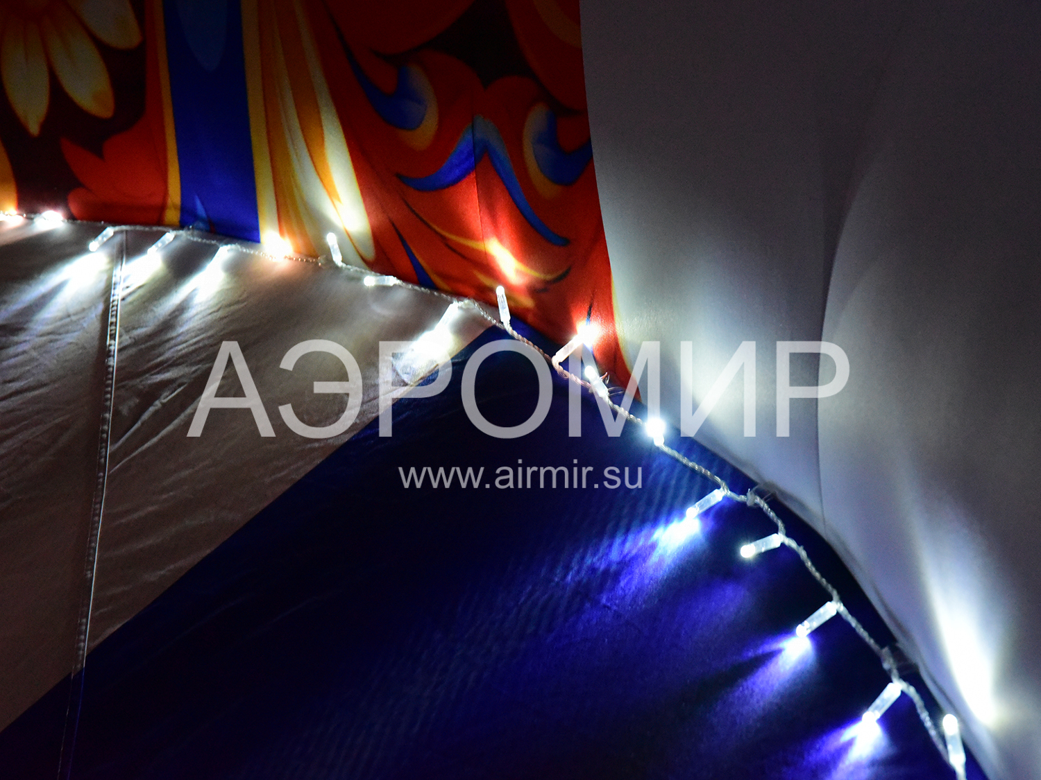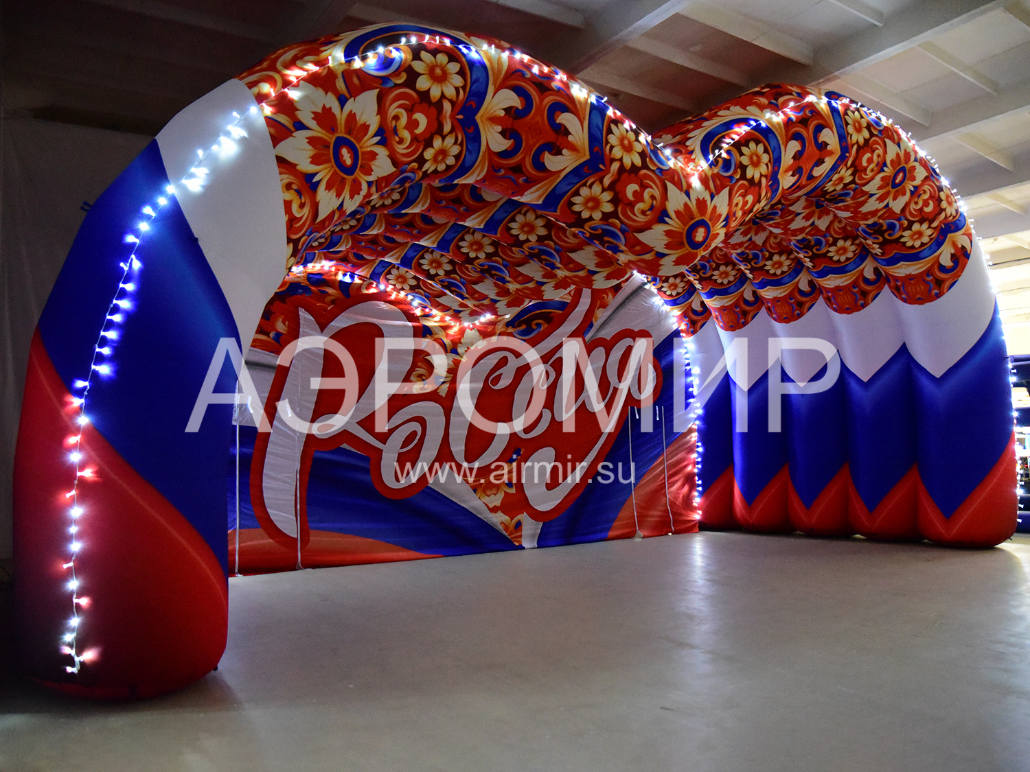 Pneumatic frame took shape, then it must be fixed on the surface. Fixation is carried out in two ways: by weighting and fastening loops dispersed around the structure perimeter. The ballast is laid out in the compartments of the scene cylinders, and the attachment to the loops is carried out by connecting the cord to the pegs immersed in the soil.