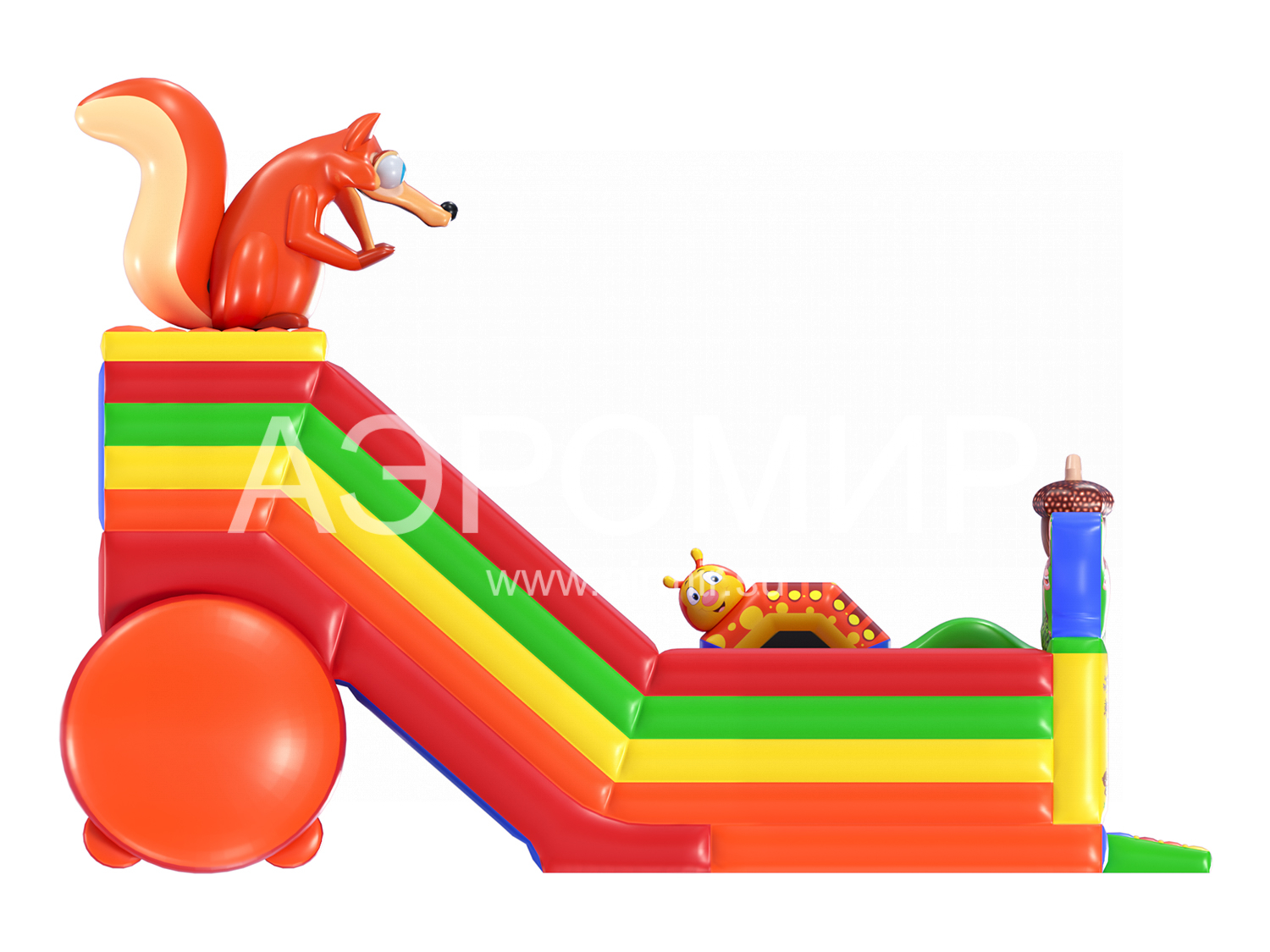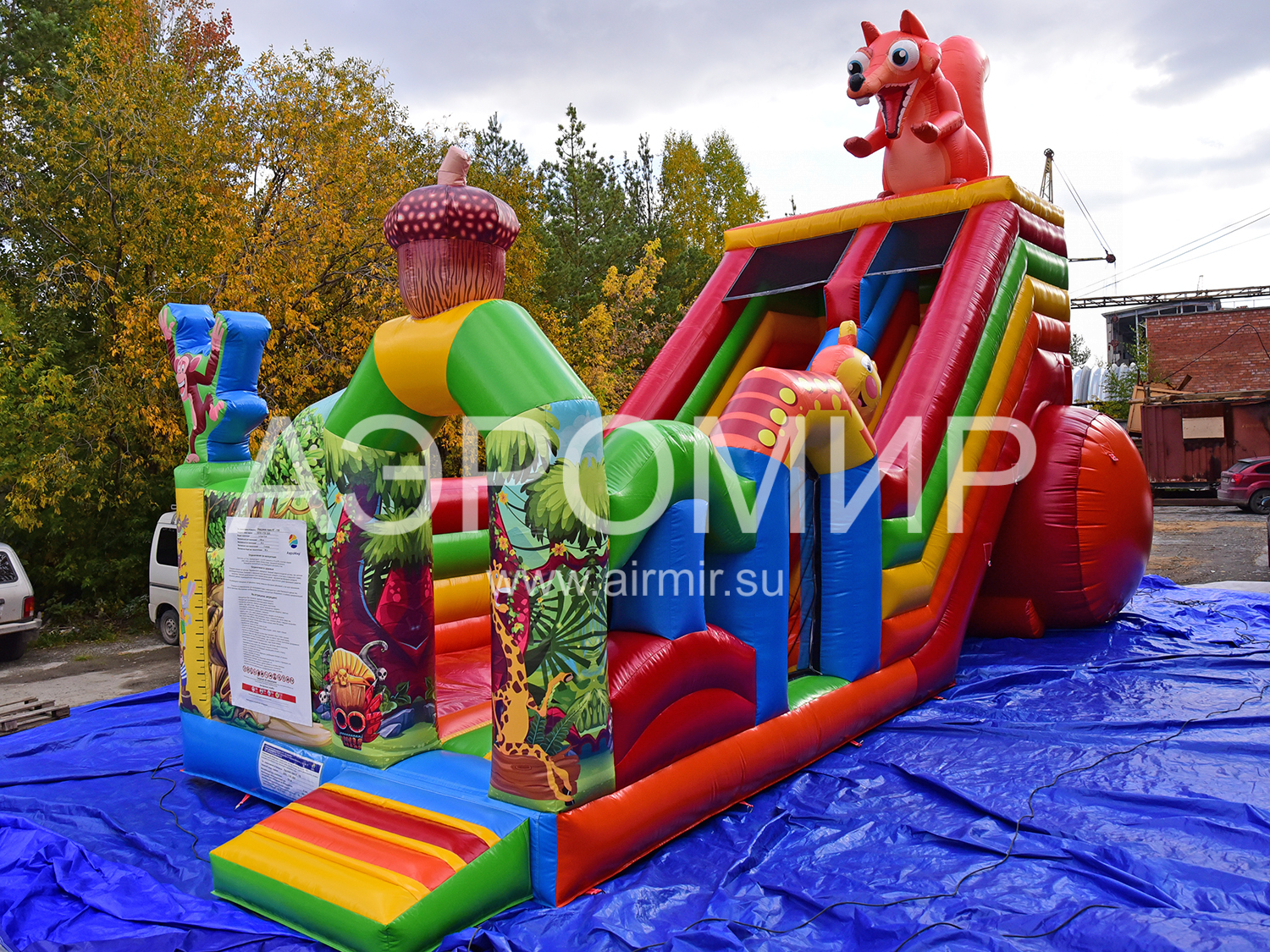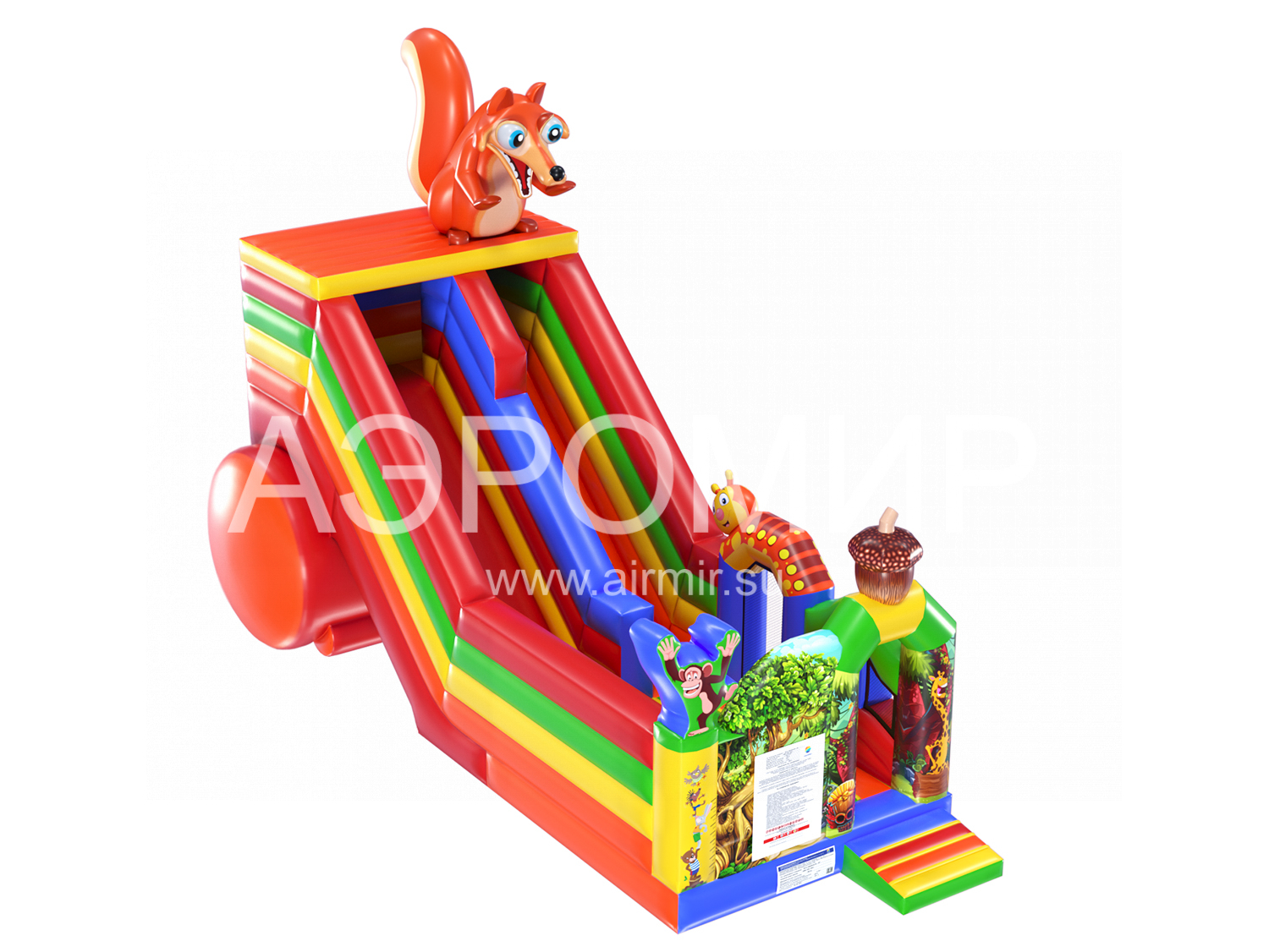 Надувная горка Белка — это новая версия аттракциона, совмещающая прыжковую площадку и большую горку. Ребята на аттракционе попрыгают на игровой площадке, а затем прокатятся с ветерком на спуске в 3,5 метра.
