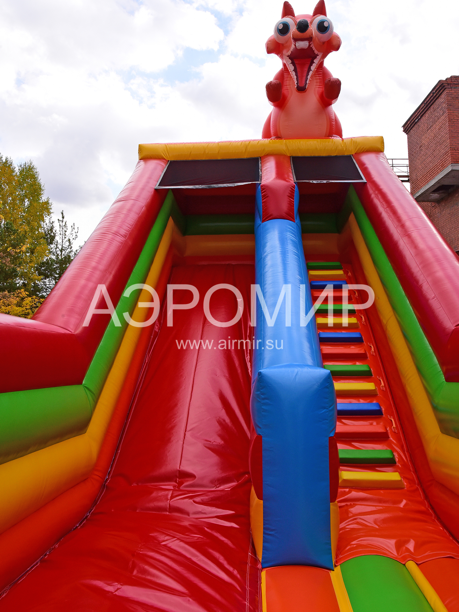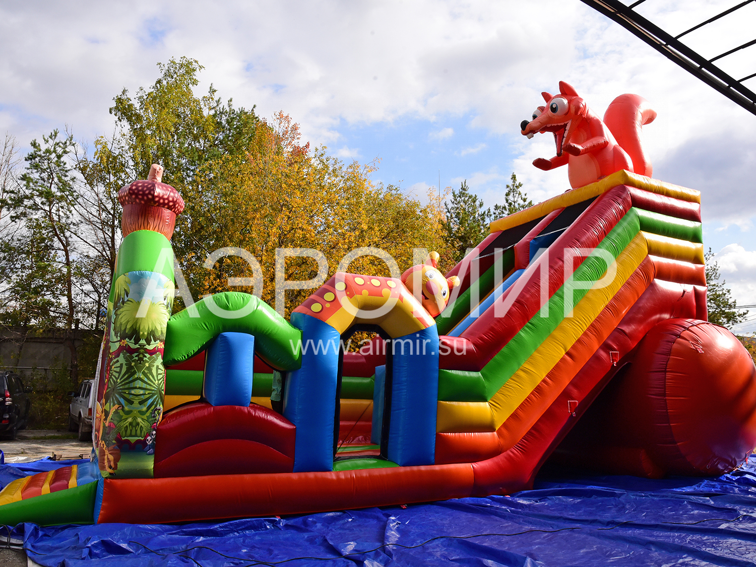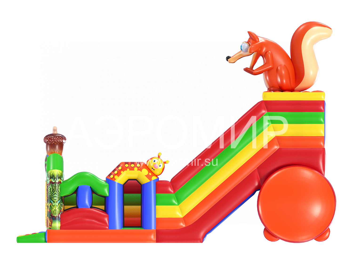 Надувная горка Белка — это новая версия аттракциона, совмещающая прыжковую площадку и большую горку. Ребята на аттракционе попрыгают на игровой площадке, а затем прокатятся с ветерком на спуске в 3,5 метра.
