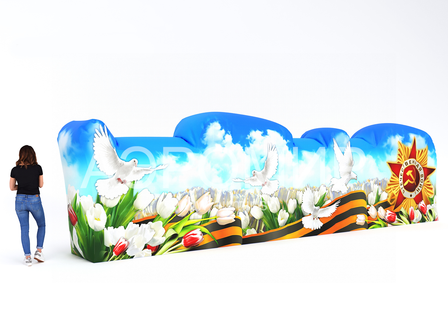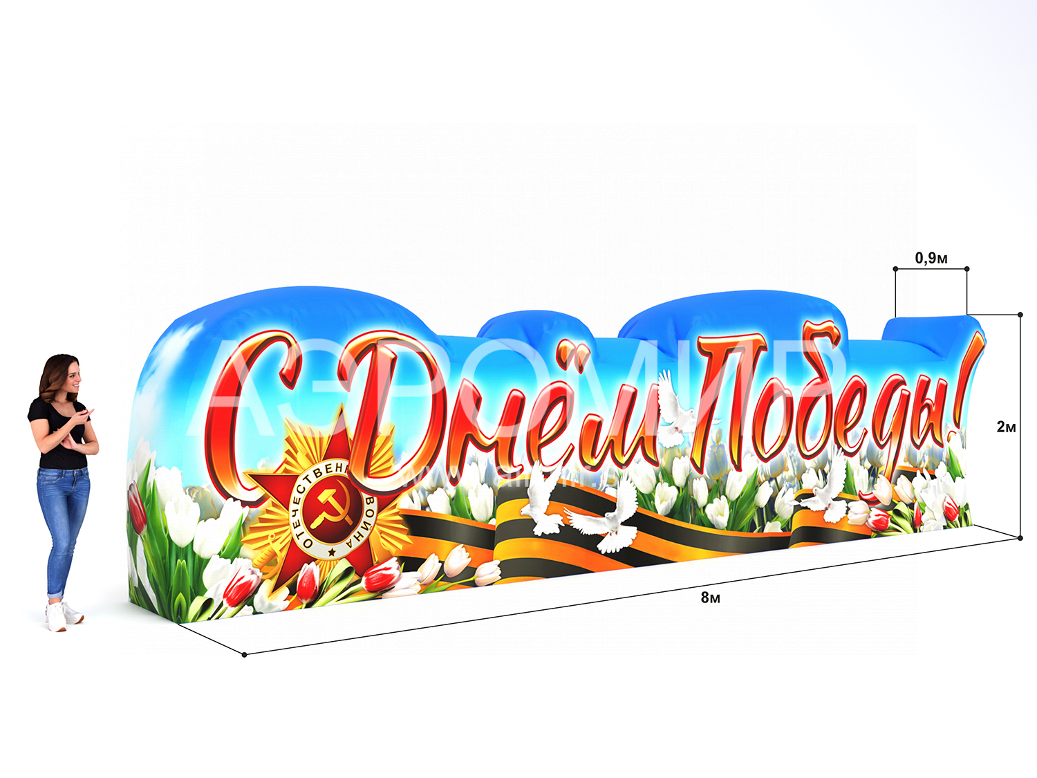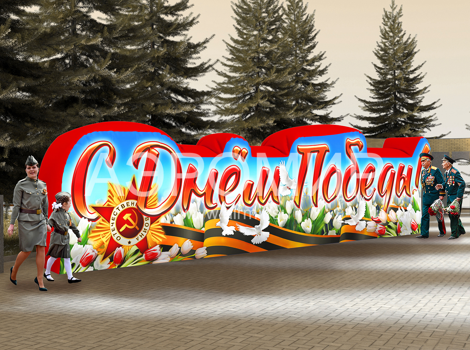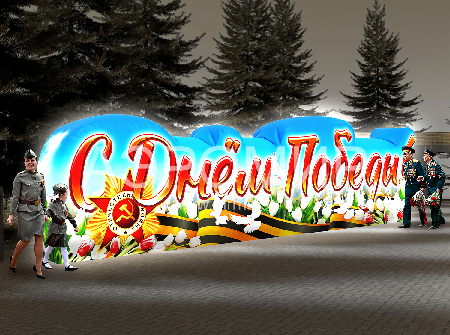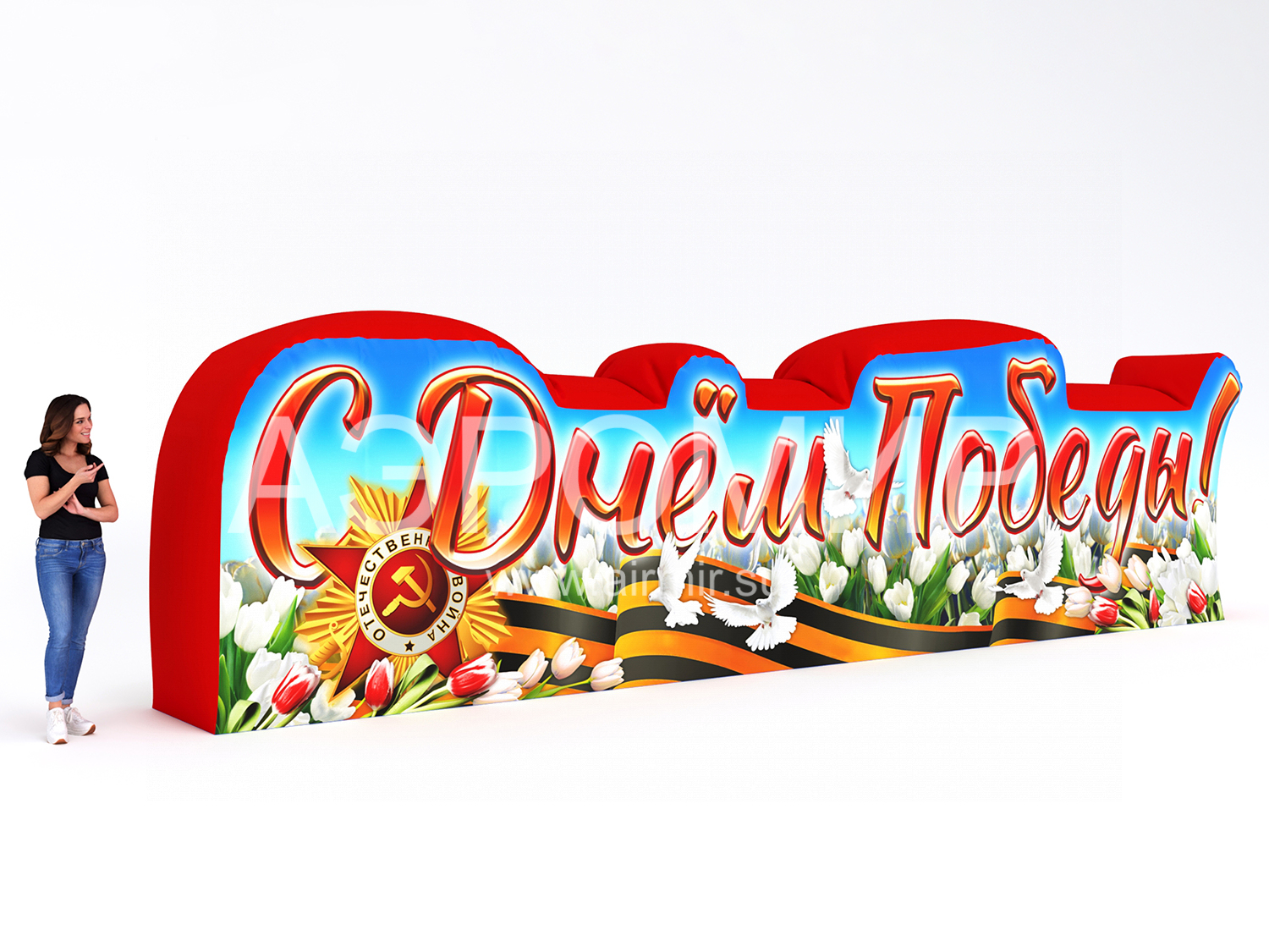 адувная надпись «С Днем Победы» – это эффектное и практичное решение для праздничного оформления. Она идеально подходит для создания торжественной атмосферы на городских мероприятиях, в парках, скверах и других местах празднования. Легко устанавливается как на улице, так и в помещении, украсит сцену или входную группу. Позвольте гостям сделать яркие и запоминающиеся фотографии на фоне этой впечатляющей надписи.