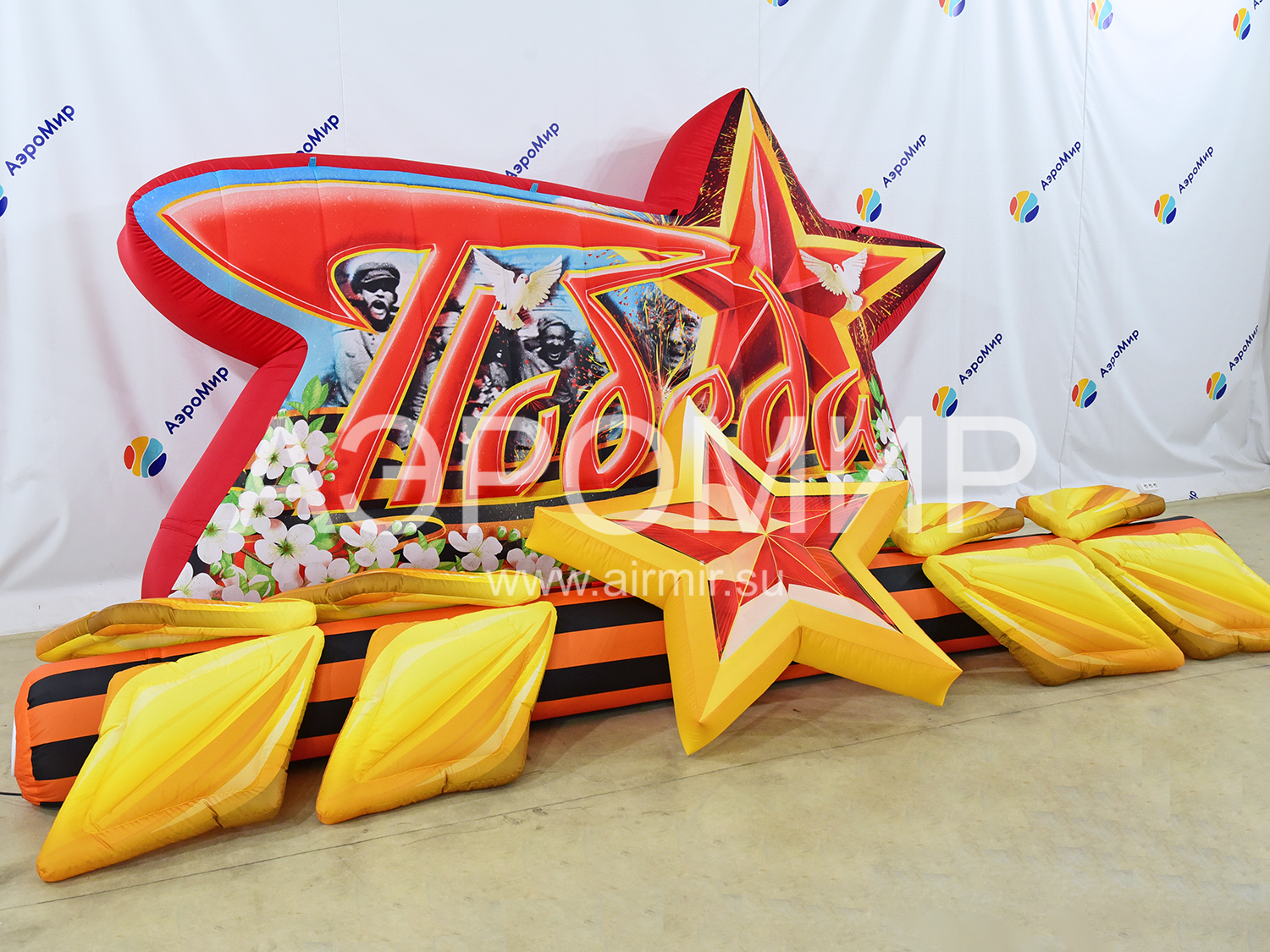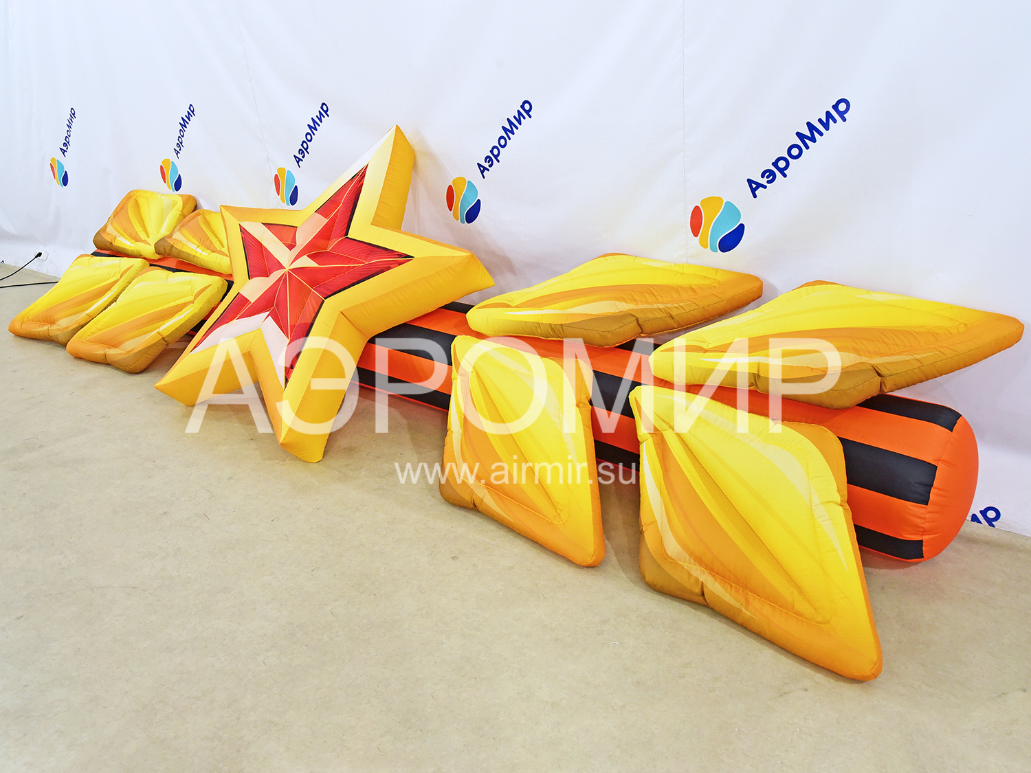 Пневмогирлянда Звезда с колосьями - прекрасное дополнение к оформлению празднования Дня Победы. Поможет оформить сцену, входную группу мероприятия, станет элементом фотозоны. Высокая степень детализации и проработки образа делает гирлянду особенно торжественной.