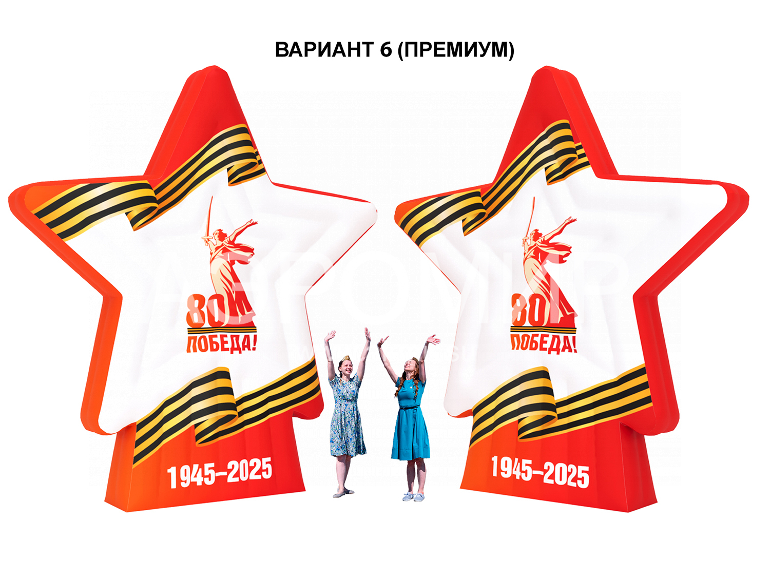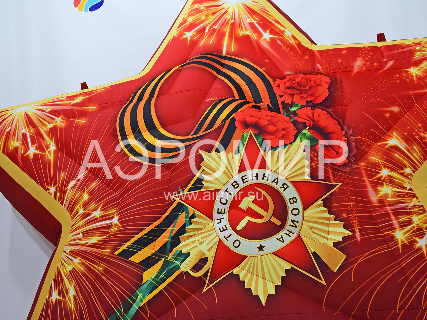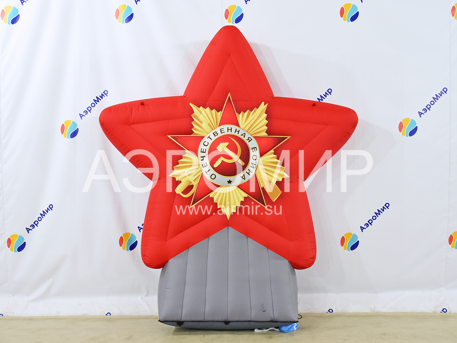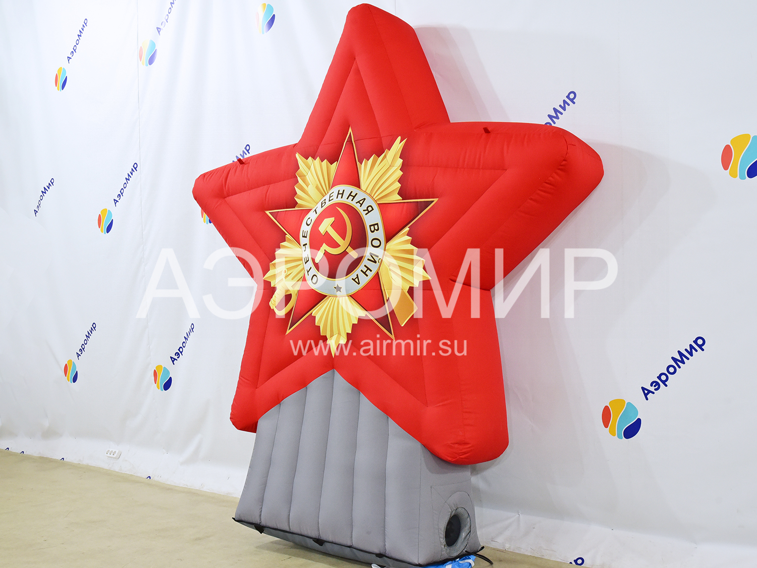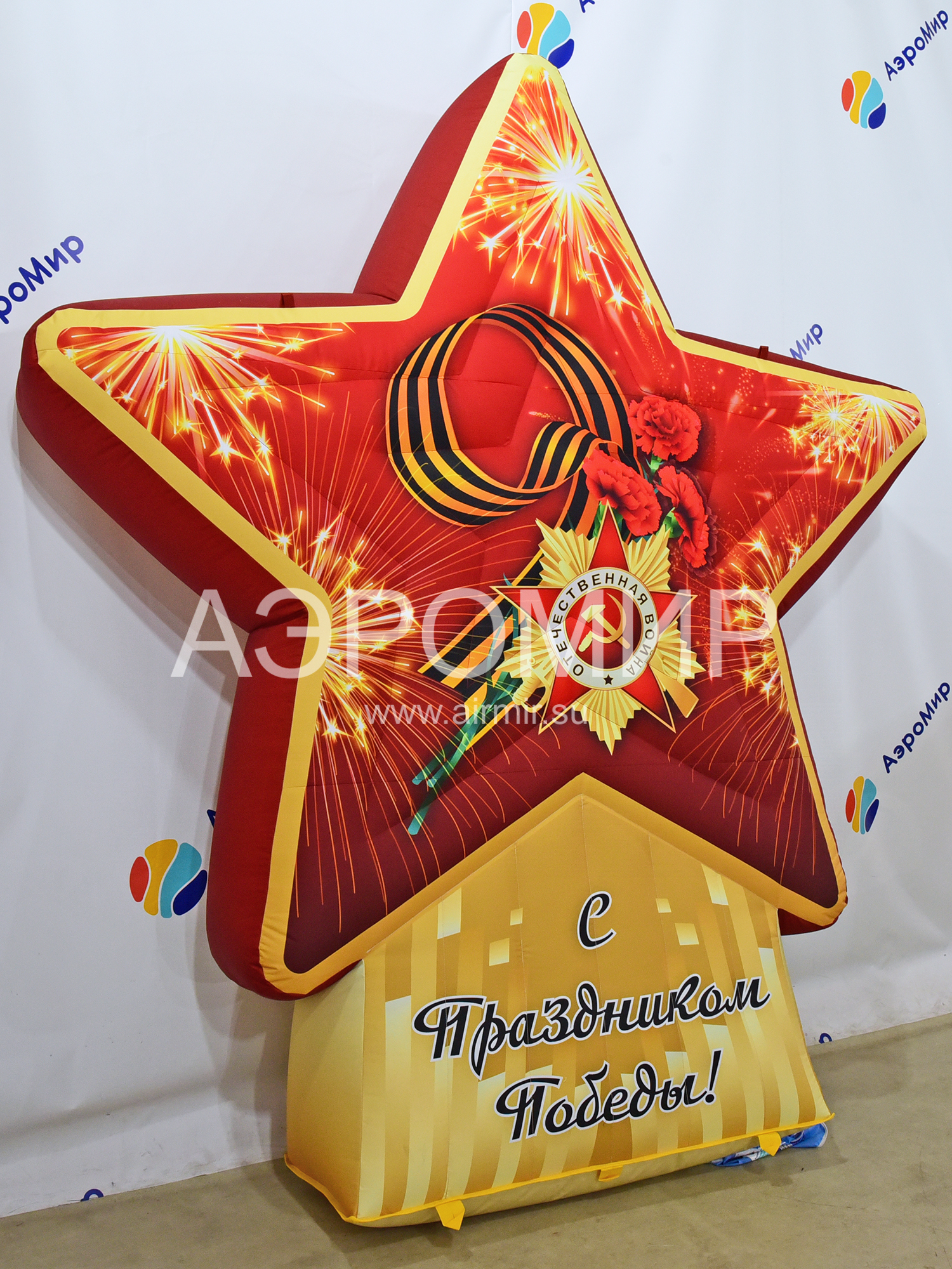 Надувной постамент с основанием и звездой. Великолепная фигура ко Дню Победы. Всевозможные варианты фотопечати и два исполнения - Лайт и Премиум. Лайт - вариант фигуры без фотопечати на основании, Премиум - это фигура с полной запечаткой а всей фигуре полностью. Мы можем нанести любую фотопечать по Вашему желанию, либо использовать варианты, предложенные нашими дизайнерами.