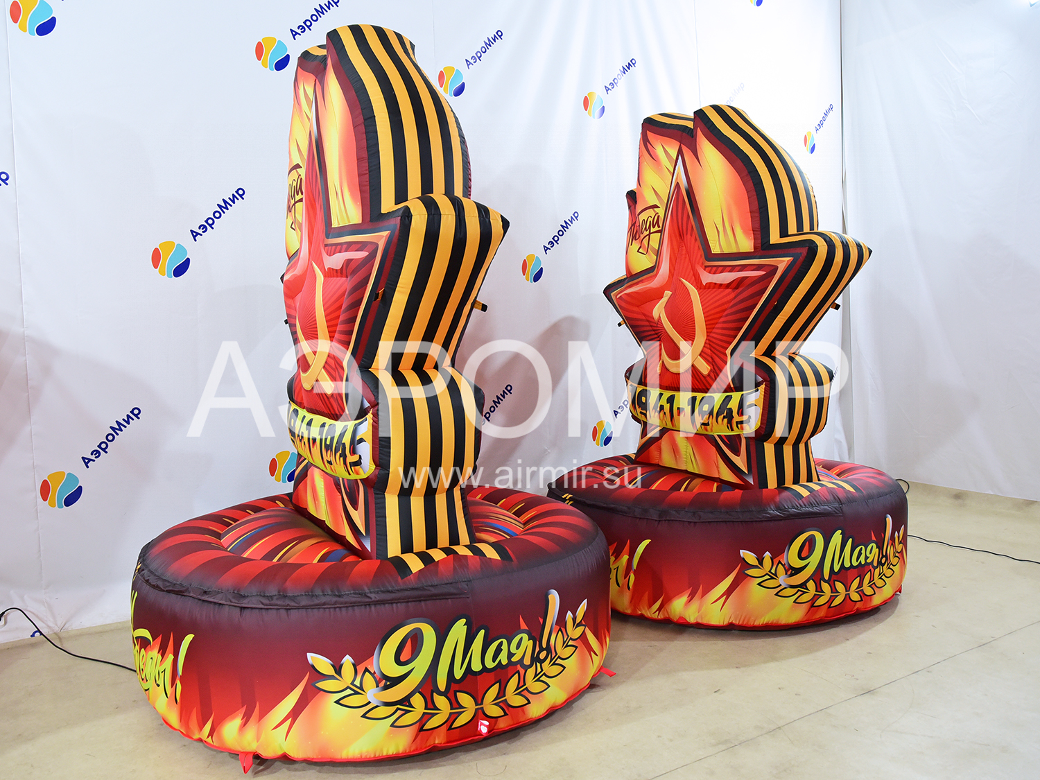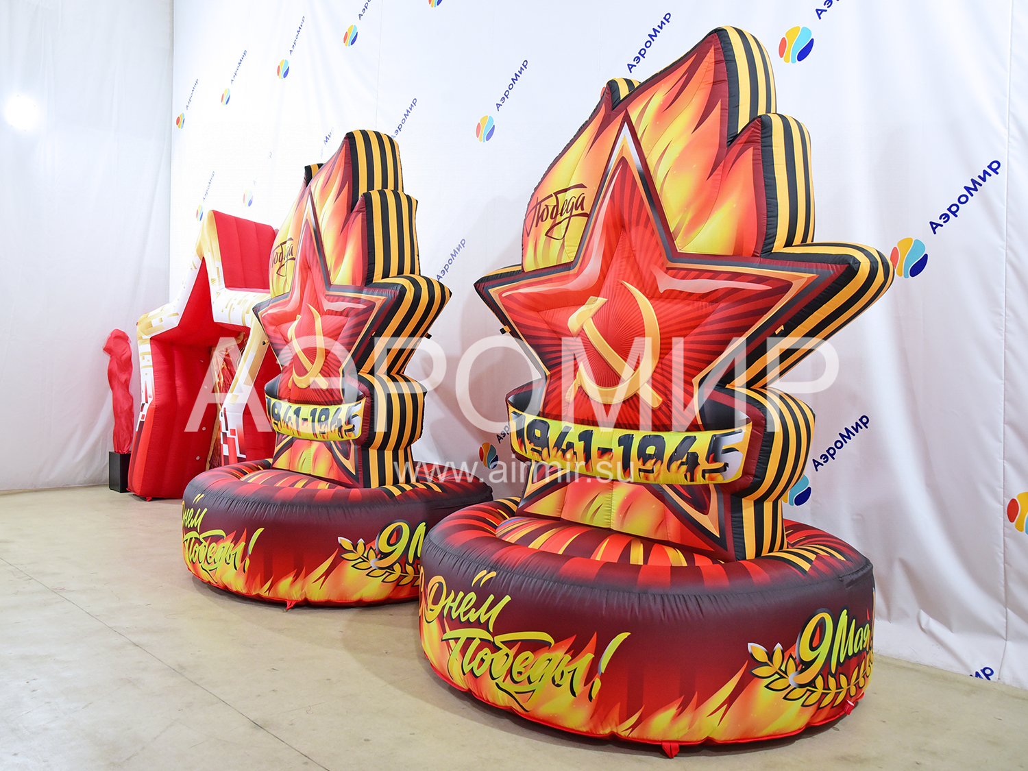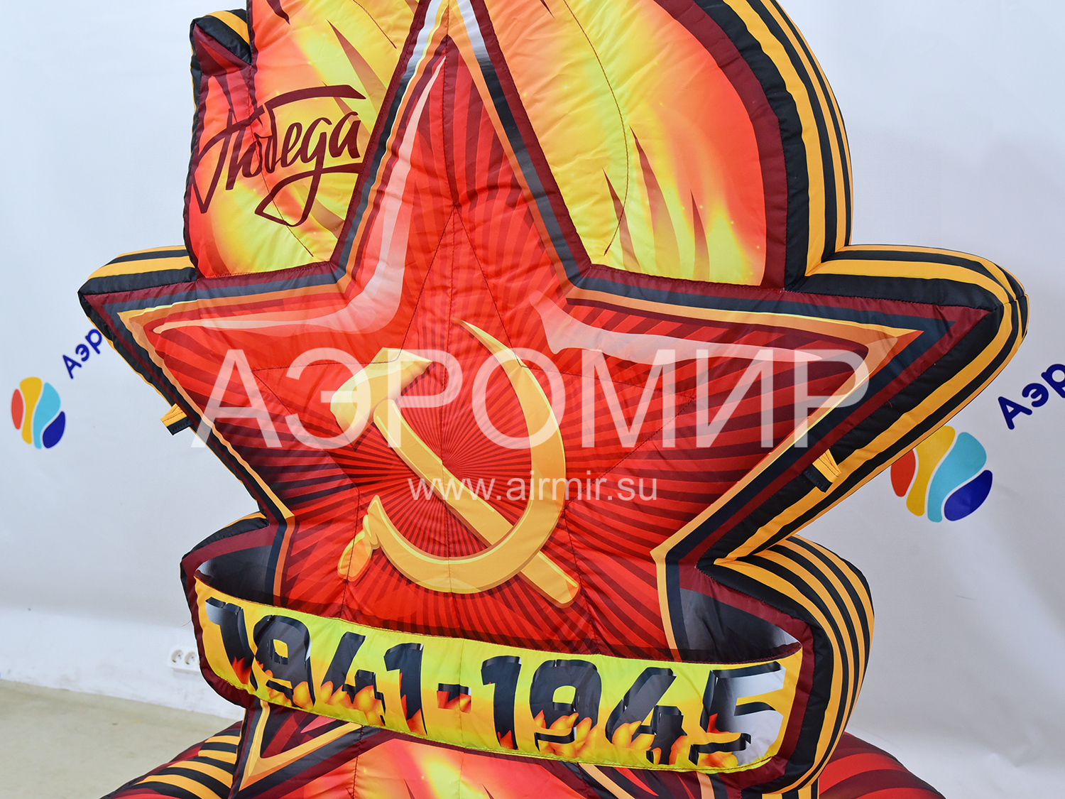 Надувная фигура Звезда для торжественного оформления Дня победы. Красивый и нарядный узнаваемый образ, большой размер - делают фигуру заметной и желанной для установки в месте празднования 9 мая.