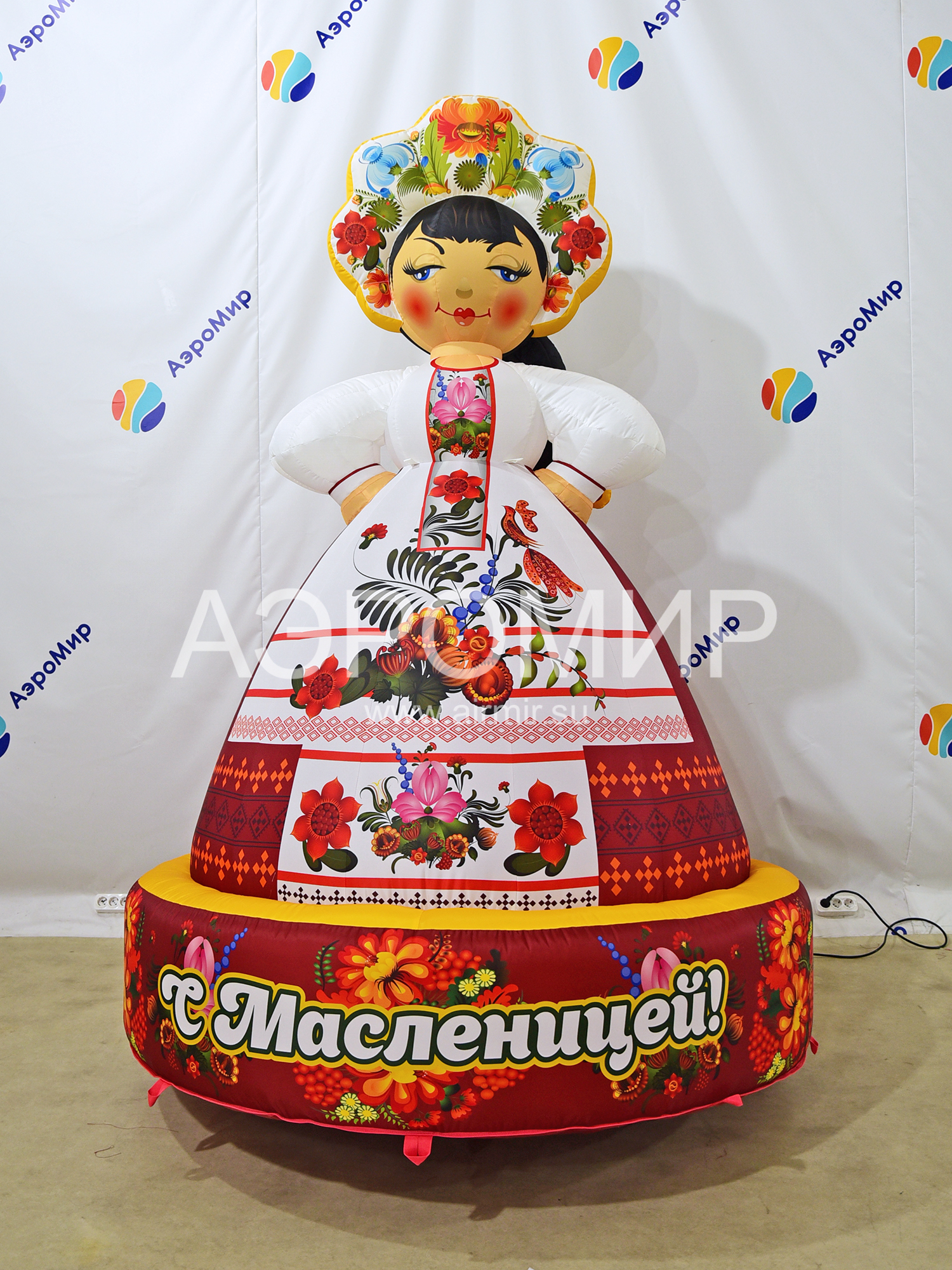 Надувная девушка Масленица - яркий и запоминающийся образ русской красавцы для празднования главного праздника уходящей зимы. Красочная фотопечать, детальная проработка образа. На фигуру можно нанести любые рекламные надписи и слоганы.