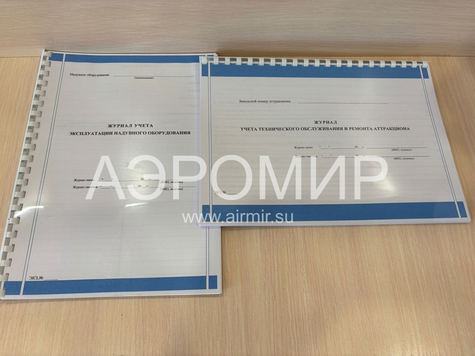 Комплект №2 (два журнала): Полный набор журналов входит в перечень обязательных документов для надувных аттракционов в соответствии с ТР ЕАЭС 038/2016 и позволяет организовать безопасную эксплуатацию надувных аттракционов. Комплект журналов поставляется в удобной и красивой сумке.