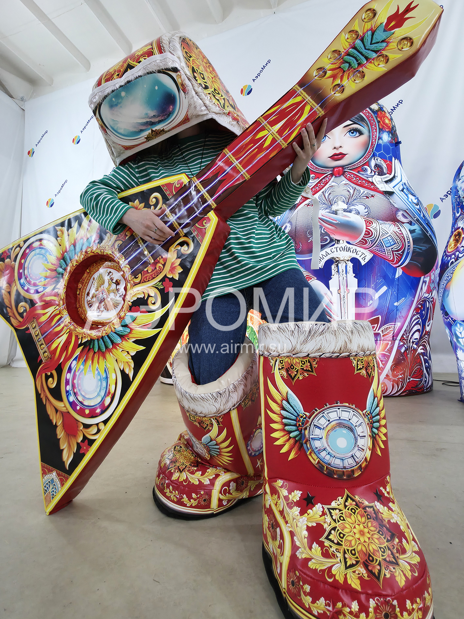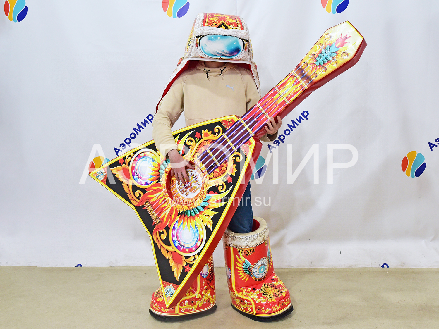 Костюм "Балагур" для конкурсов и фотосессий: сапоги-скороходы, гигантская шапка и балалайка. Подходит взрослым и детям, каждый элемент можно использовать отдельно в играх и эстафетах.