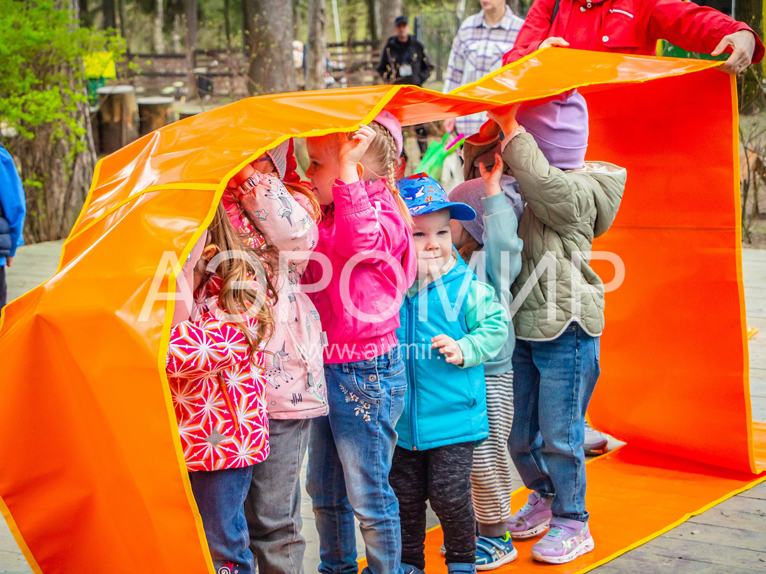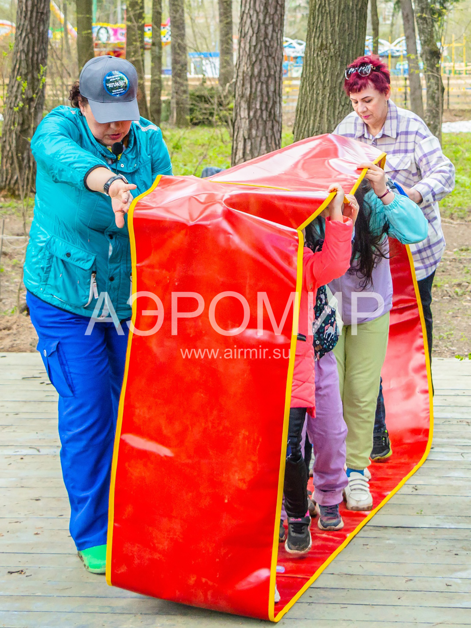 Team attraction "Caterpillar" is designed for team play. The task of each team is to move the closed continuous "tape" with your hands and feet to reach the finish line faster than your opponents.