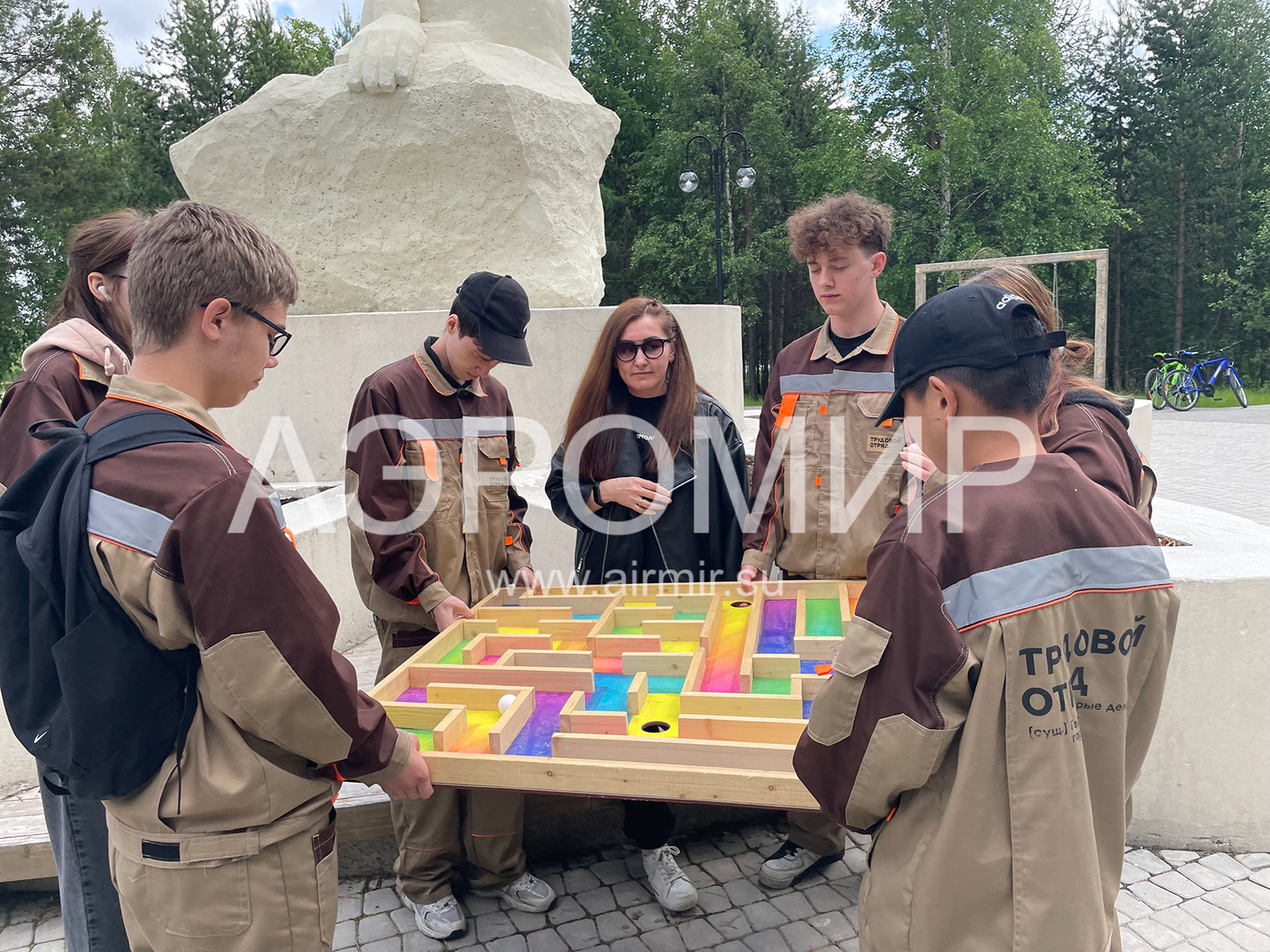 The purpose of this seemingly simple attraction is to keep the “table” by common efforts and, changing the angle of its inclination, move the ball through the maze to eventually drive it into the hole. Thus, playing in the "Labyrinth", the participants learn to act together, to develop strategies and tactics for the behavior of their group.