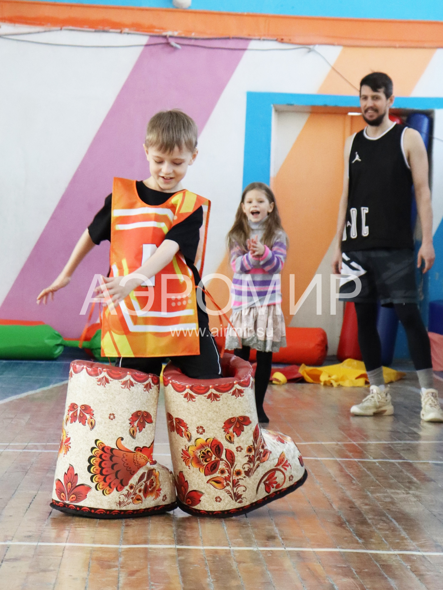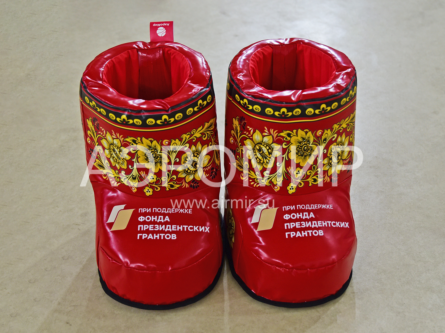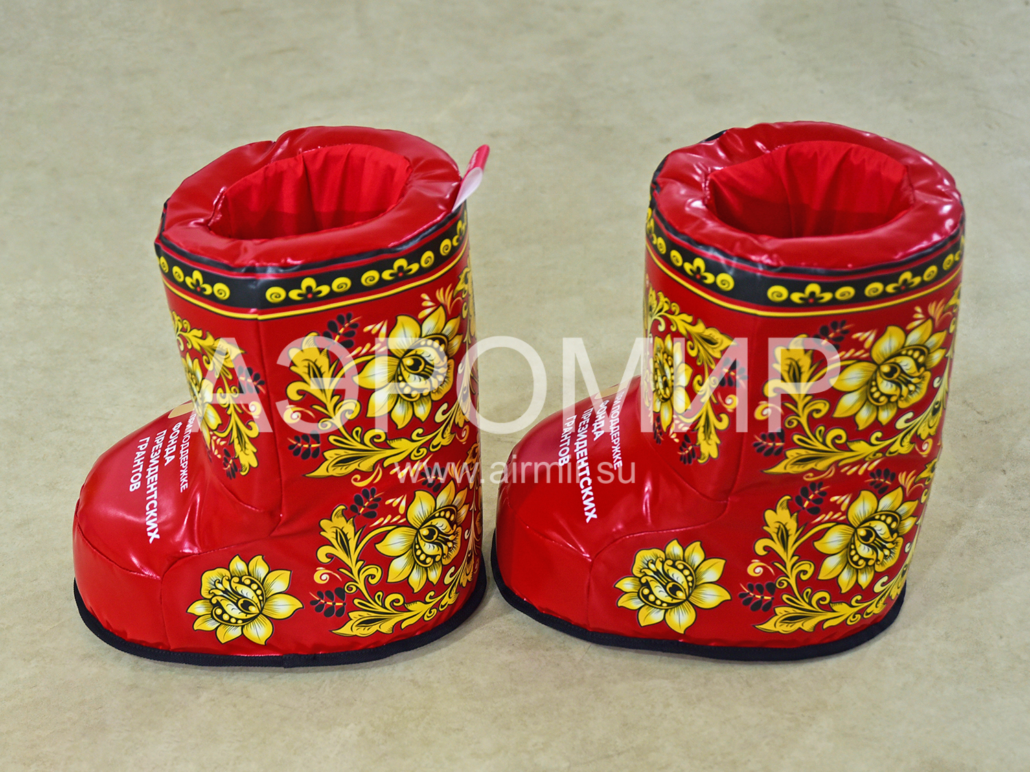 Тематический игровой реквизит в русско-народном стиле. Гигантские валенки прекрасно подойдут для веселых соревнований а потом отлично дополнят фотозону. Изготовлены из прочного ПВХ и поролона, нанесена качественная полноцветная печать.