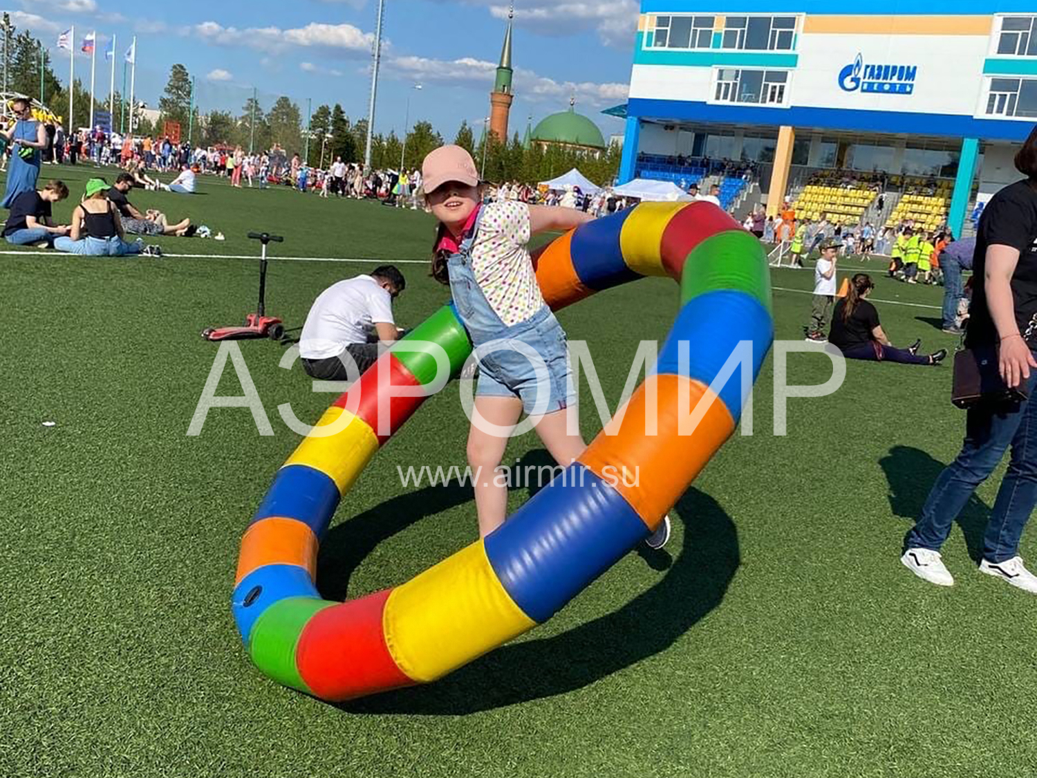 A great option for a classic hoop. But with our giant hoop, games, competitions and relays will become even more fun. It can be used for team building, on city celebrations and holidays. The essence of the game is simple, who will run the hoop at the waist for a longer time, or in any other variants as well as with a regular hoop. Lightweight material, bright and durable.