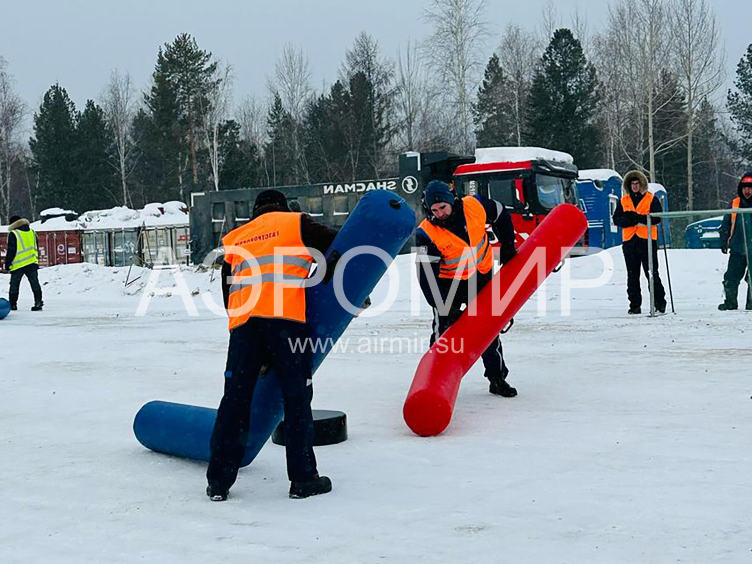 The attraction can be used for a comic game. An inflatable ball, large or small, is suitable as a puck. The equipment is hermetic and does not require constant swapping. Excellent energetic game of team building, coordination and coherence of the team’s overall work!