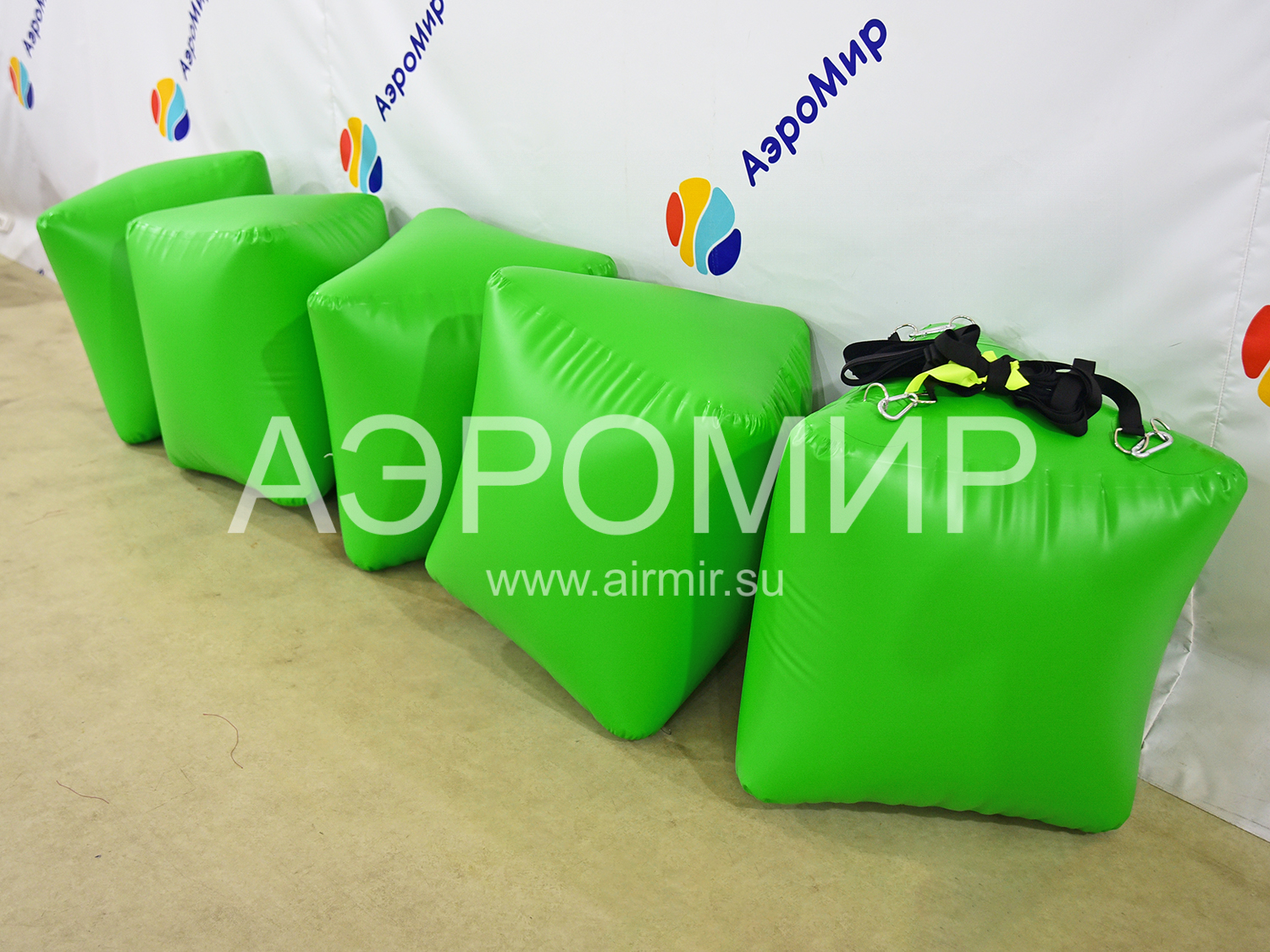 Мягкий конструктор для командной игры по типу башенка. Кубики-призма большие в полноцветной фотопечати. Необходимо составить их в одну башню, но подставлять следующий кубик можно только снизу, а всю башню можно пытаться удержать, в это время держась за тросики на самом верхнем кубике. Игра на слаженность действий и общую командную работу.